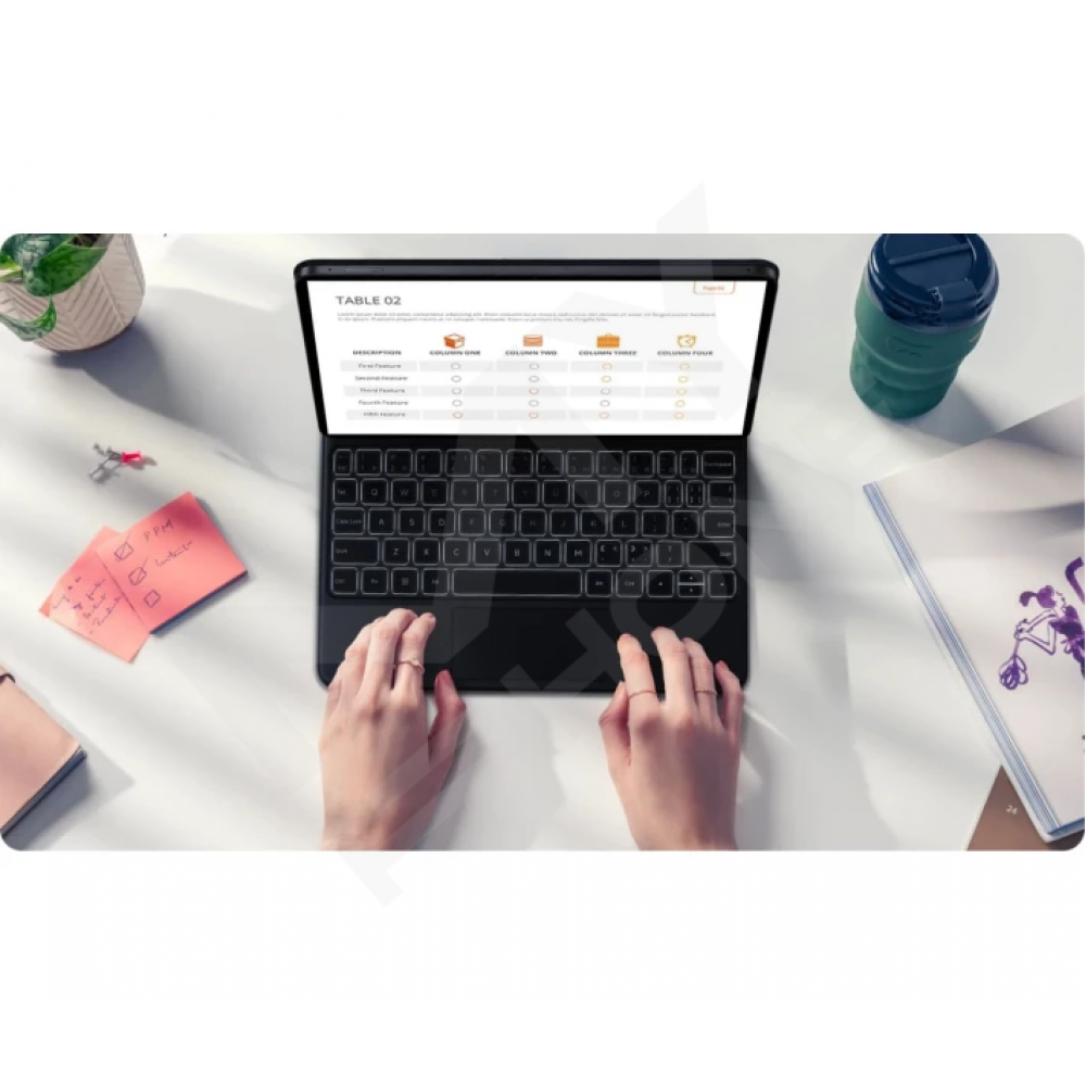Розробники чохла-клавіатури Xiaomi подбали, щоб ти міг розв'язувати робочі завдання будь-якої складності швидко та з комфортом. Клавіші мають достатню площу, а також зручний глибокий крок натискання 1,3 мм. Це забезпечує чіткий зворотний зв'язок, необхідний для сліпого методу введення. Подвійні, злегка увігнуті ковпачки кнопок, повністю повторюють вигин подушечок твоїх пальців, забезпечуючи максимальний комфорт роботи в будь-яких умовах.