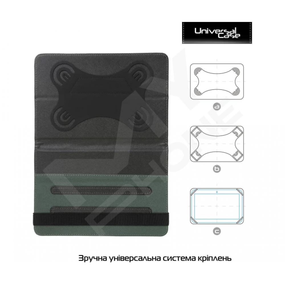 Додатково чохол має функцію зручної підставки для комфортнішого повсякденного використання планшета. Чохол щільно та надійно закріплює пристрій за допомогою силіконового кріплення, яке передбачено під декілька розмірів планшета. Кріплення виготовлене з високоякісних матеріалів.