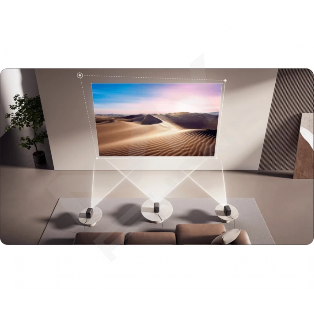 Інтелектуальний алгоритм Keystone AI здійснює автоматичну корекцію трапецоїдних спотворень (горизонтальна та вертикальна) та забезпечує отримання ідеально правильного пропорційного зображення при розташуванні проектора практично під будь-яким кутом до екрану. Автоматичне вирівнювання екрана та автофокус покращують параметри зображення без твоєї участі. А функція обходу перешкод автоматично коригує розташування екрана для бездоганного перегляду.