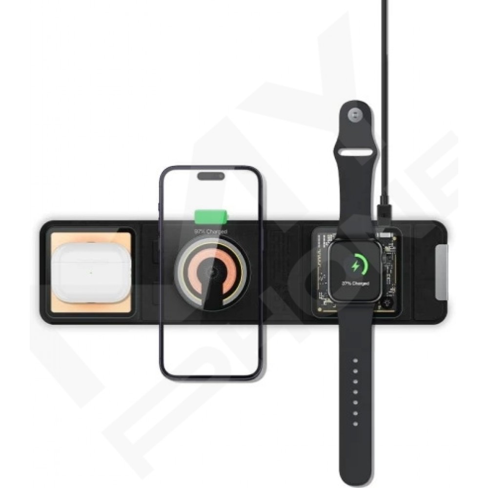 Теги: MAXCO MCW-02, бездротова зарядка 3in1, Qi зарядка, 15W wireless charger, зарядна станція 3 в 1, чорна