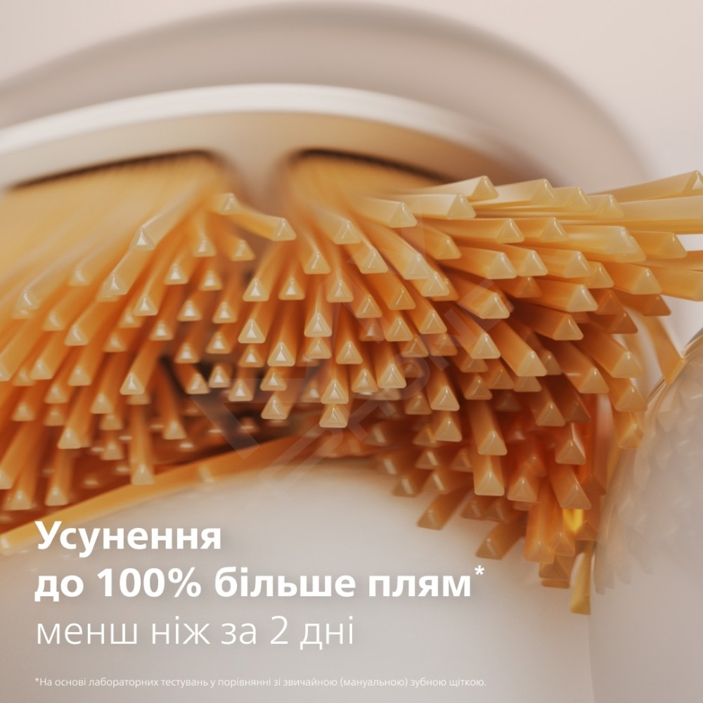 Насадка All-in-One містить трикутні щетинки, які збільшують контакт із поверхнею зубів та ефективніше видаляють плями. Результат говорить сам за себе: до 100% більше видалення плям менш ніж за два дні.