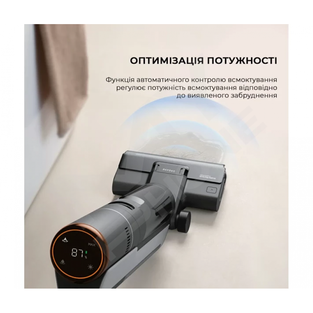 Контролюй кожен етап прибирання за допомогою інформативного світлодіодного дисплея на корпусі. На екрані відображаються поточний режим, потужність та відсоток заряду батареї. У разі виникнення проблем дисплей повідомить про помилку, наприклад, при блокуванні щітки або трубки, а також за низького рівня води. Голосовий помічник Dreame H12S надає більше інформації про стан прибирання. Ти завжди будеш в курсі поточного статусу та можливих несправностей, а також отримаєш корисні поради щодо обслуговування.