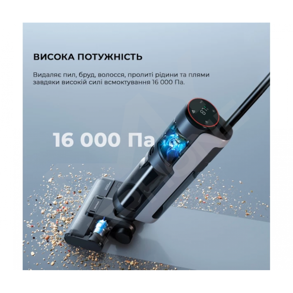 Висока та стабільна потужність всмоктування 16 кПа дозволяє легко прибирати бруд, пил, сміття, волосся та складні забруднення. Цей інтелектуальний пилосос ефективно справляється з сухими та вологими плямами, включаючи розсипану мелену каву або пролитий напій. Регульована потужність всмоктування забезпечує плавний рух по твердих покриттях, паркету, плитці та ламінату, видаляючи стійкі забруднення та сліпе сміття.