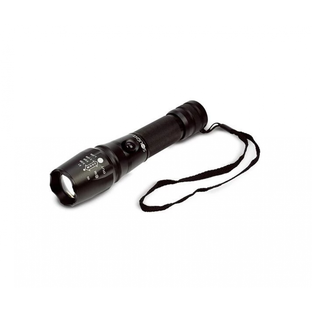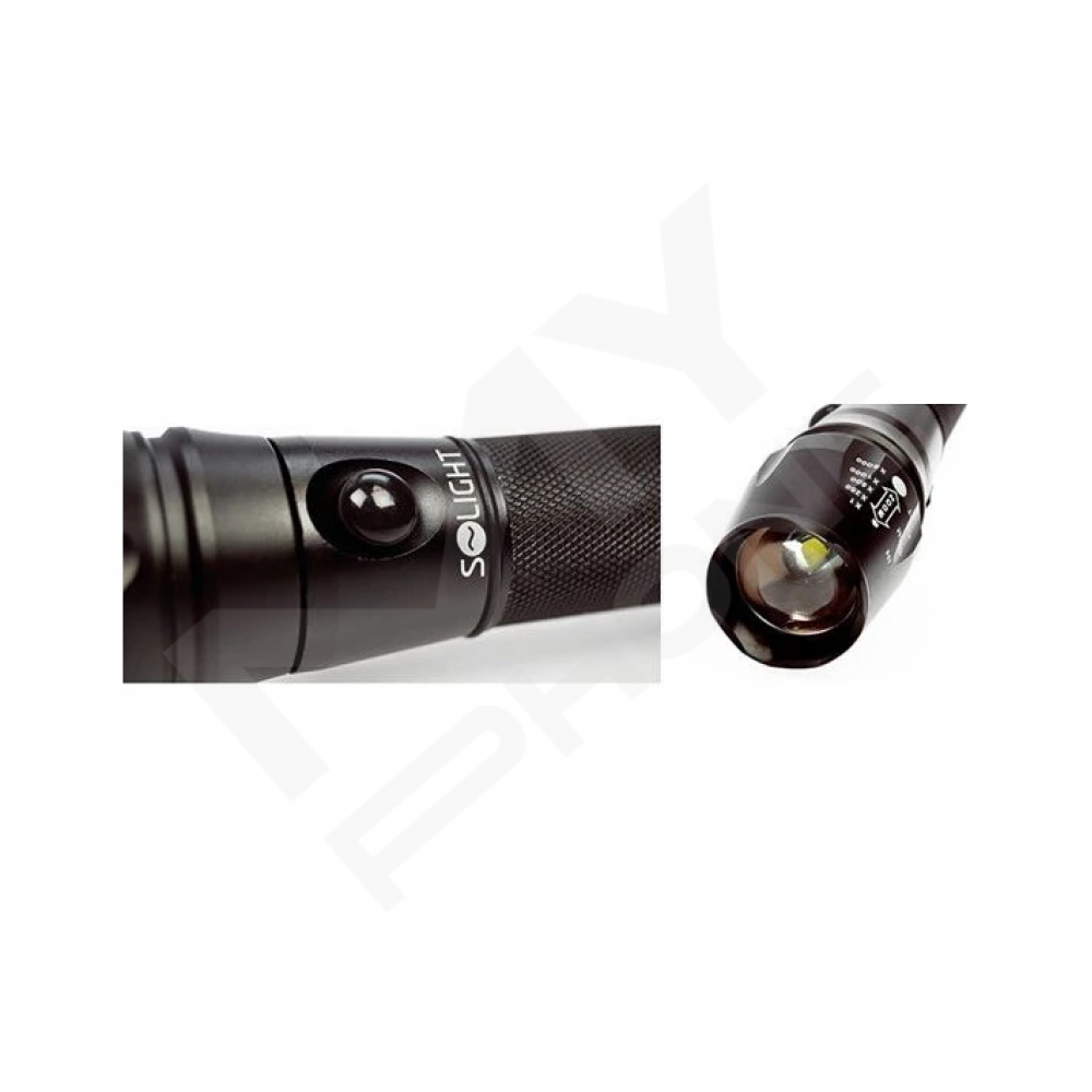Перед вами ергономічна модель, що має систему телескопічного фокусування. За її допомогою можна направити промінь в одну точку на відстань до 258 м або ж розсіяти його в радіусі 73 м навколо. Використовуйте 5 режимів роботи Solight WN13: на 100/30/10% потужності, миготіння та сигнал SOS.