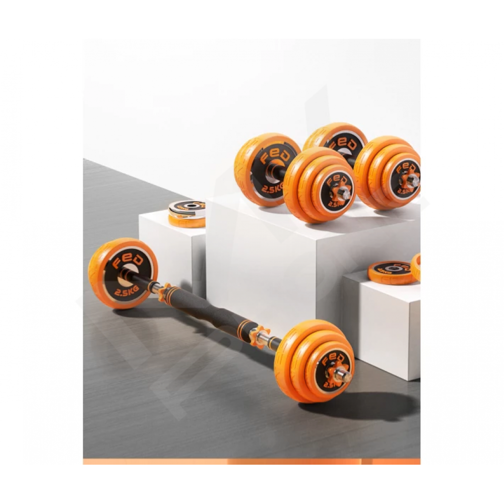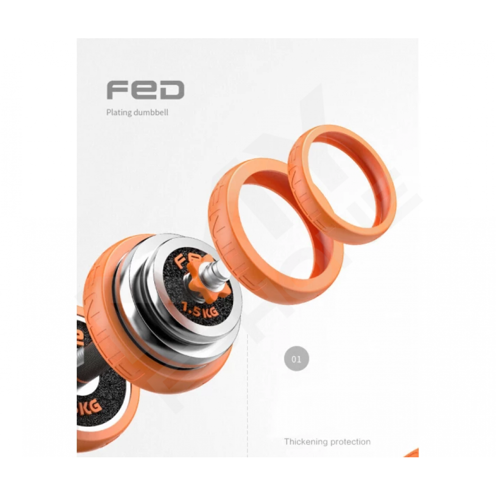 Гантелі FED дозволять підтримувати своє тіло в тонусі не виходячи з дому. Для цього вони мають зручні держаки з нековзною поверхнею, а також знімні диски. Ви можете легким рухом руки міняти вагу снаряда виходячи з власних уподобань і поставлених цілей. Снаряд підходить для виконання найрізноманітніших вправ на всі групи м'язів.