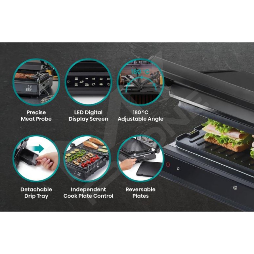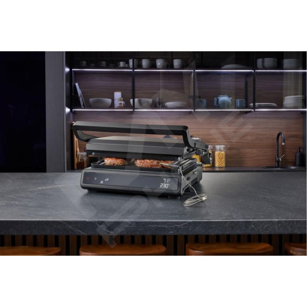 Якщо ви відчуваєте невпевненість під час приготування на грилі, тому що ви ніколи не знаєте, коли м’ясо правильно приготоване, цей гриль допоможе вам подолати труднощі. За допомогою датчика готовності м’яса, що входить до комплекту, ви можете просто виміряти температуру м’яса та переконатися, що страва відповідає вашим побажанням: добре просмажена, середньої готовності, середньо просмажена з кров’ю або майже повністю просмажена.