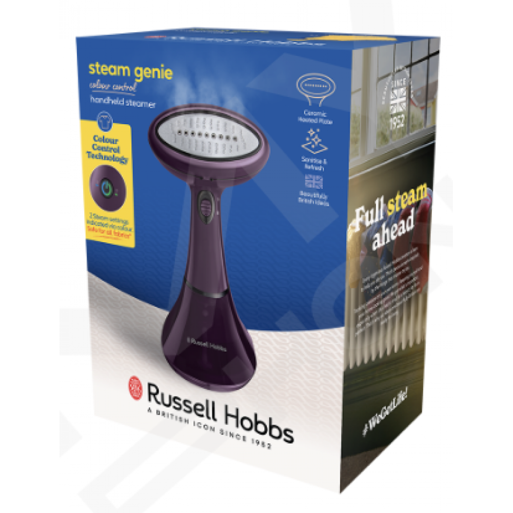 Russell Hobbs Steam Genie Colour Control здатний освіжити та віджати будь-яку тканину - від штор і товстих вовняних пальт до шовкових сорочок - усе, що вам потрібно! Завдяки двом налаштуванням пари навіть найм'якіші атласи та важкі вовняні пальта можна освіжити за лічені секунди. Завдяки технології Colour Control, що відображає налаштування пари за допомогою двоколірних світлодіодів, ви можете легко перемкнутися з ніжно-блакитного на турбо-зелений, щоб впоратися з будь-яким завданням - від підковдри до джинсів. І він не лише надає ошатності вашим тканинам, а й освіжає їх. Завдяки чистій потужності пари він знищує до 99,9% бактерій і вірусів усього за 60 секунд*, забезпечуючи свіжість тканин і душевний спокій.