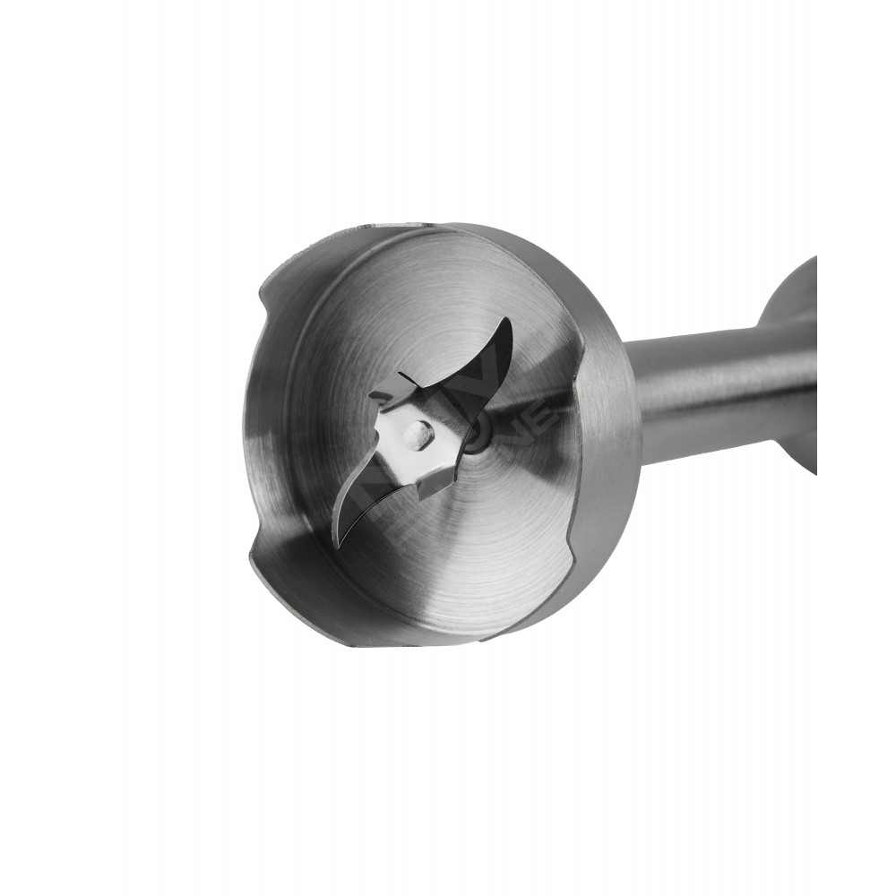 Металевий ніж-подрібнювач дозволяє працювати з гарячими стравами, зокрема супами та соусами, а захист від бризків забезпечує акуратну роботу й чистий результат.