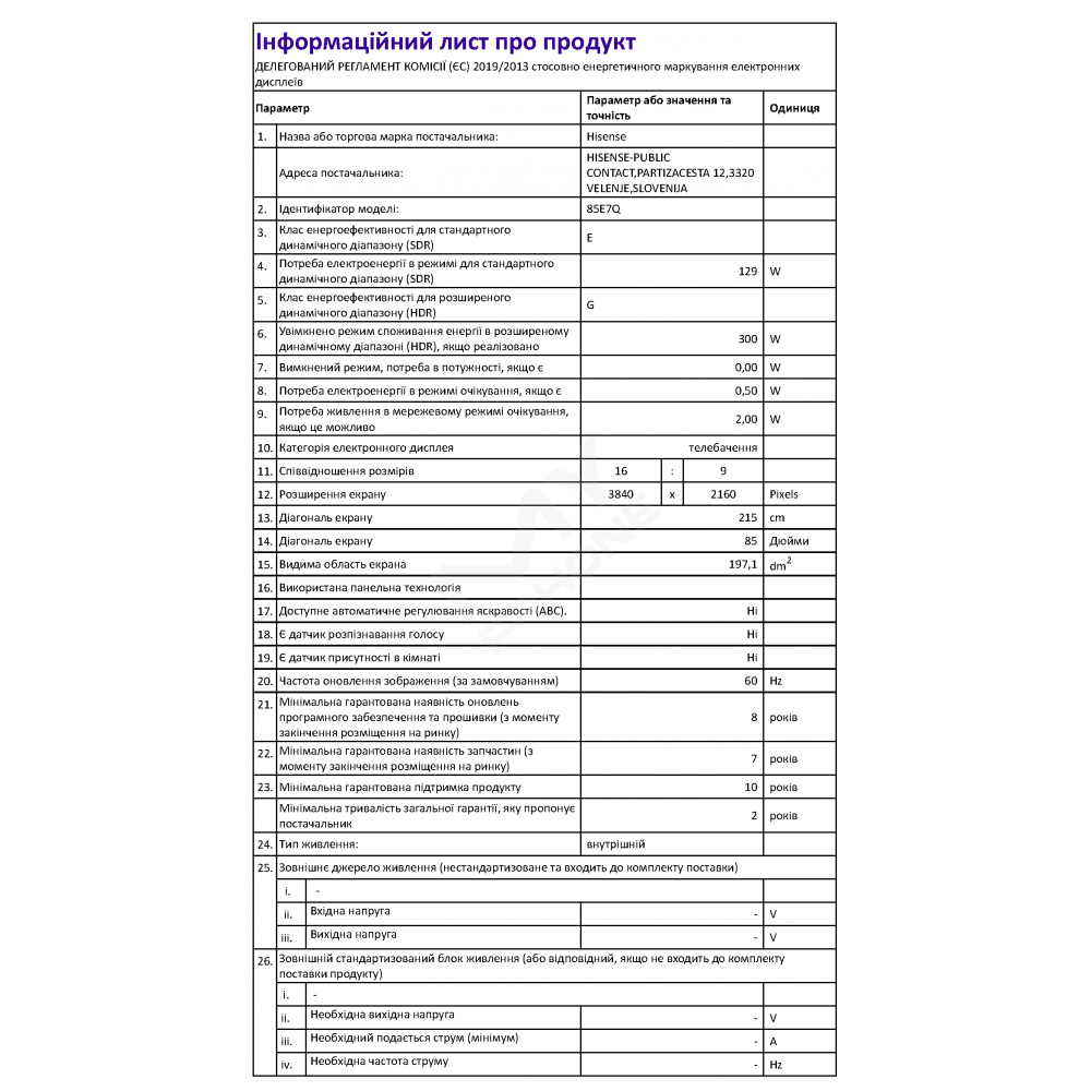 Діагональ екрана: 85"