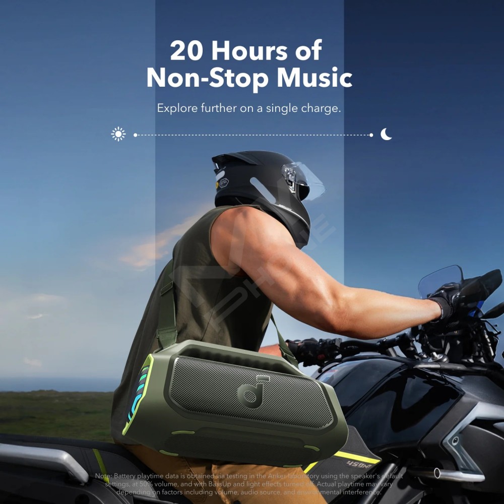 30 Вт швидка зарядка та вбудований зовнішній акумулятор: під'єднайте зарядний пристрій 30 Вт, щоб повністю зарядити зовнішню колонку Boom 2 Plus усього за 3 години та насолоджуватися музикою протягом 20 годин. За допомогою вбудованого зовнішнього акумулятора ви можете заряджати свій телефон та інші необхідні пристрої потужністю 10 Вт, де б ви не знаходилися. (Час відтворення може варіюватися залежно від рівня гучності та відтворюваного контенту.