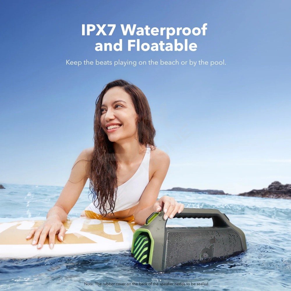 Водонепроникність і плавучість за стандартом IPX7: вулична акустична система Boom 2 Plus розроблена для будь-яких пригод, тому ви можете без турбот слухати музику на пляжі, біля басейну або під дощем.