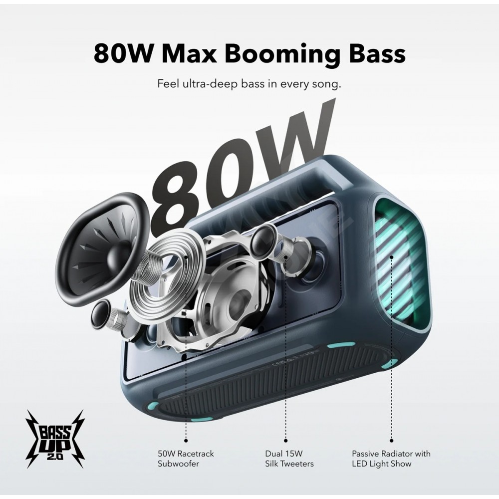 80 Вт максимальної потужності басів: відчуйте силу басів у кожній пісні завдяки сабвуферу Racetrack, який забезпечує додаткову глибину та чіткість звучання. З BassUp™️ 2.0 ви можете налаштувати еквалайзер басів і збільшити потужність з 60 Вт до приголомшливих 80 Вт.