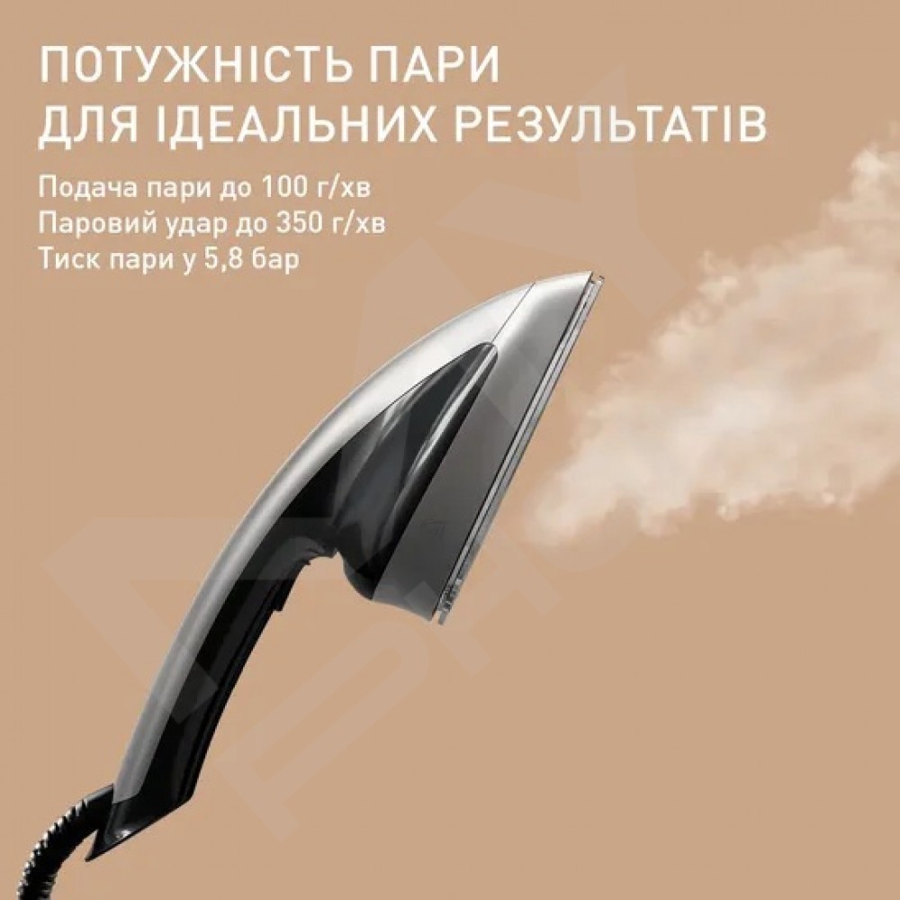 Тип: Прасувальна система Потужність: 2170 Вт Подача пари: 100 г/хв Паровий удар: 350 г/хв