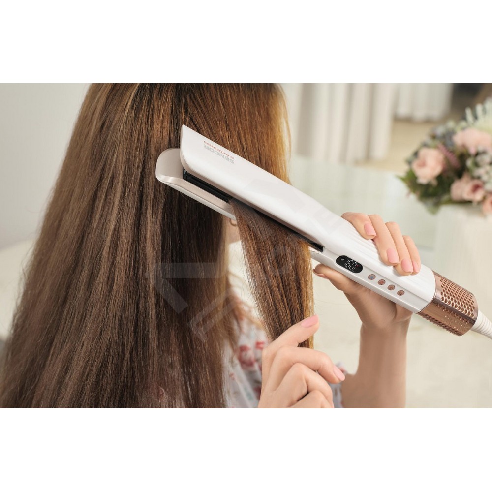 SHI 9100RS переосмислює укладання волосся за допомогою інноваційної технології, усуваючи необхідність у гарячих пластинах і мінімізуючи термічне пошкодження. Завдяки високошвидкісному потоку повітря він одночасно сушить і випрямляє волосся, зберігаючи його природну силу, гладкість і блиск.