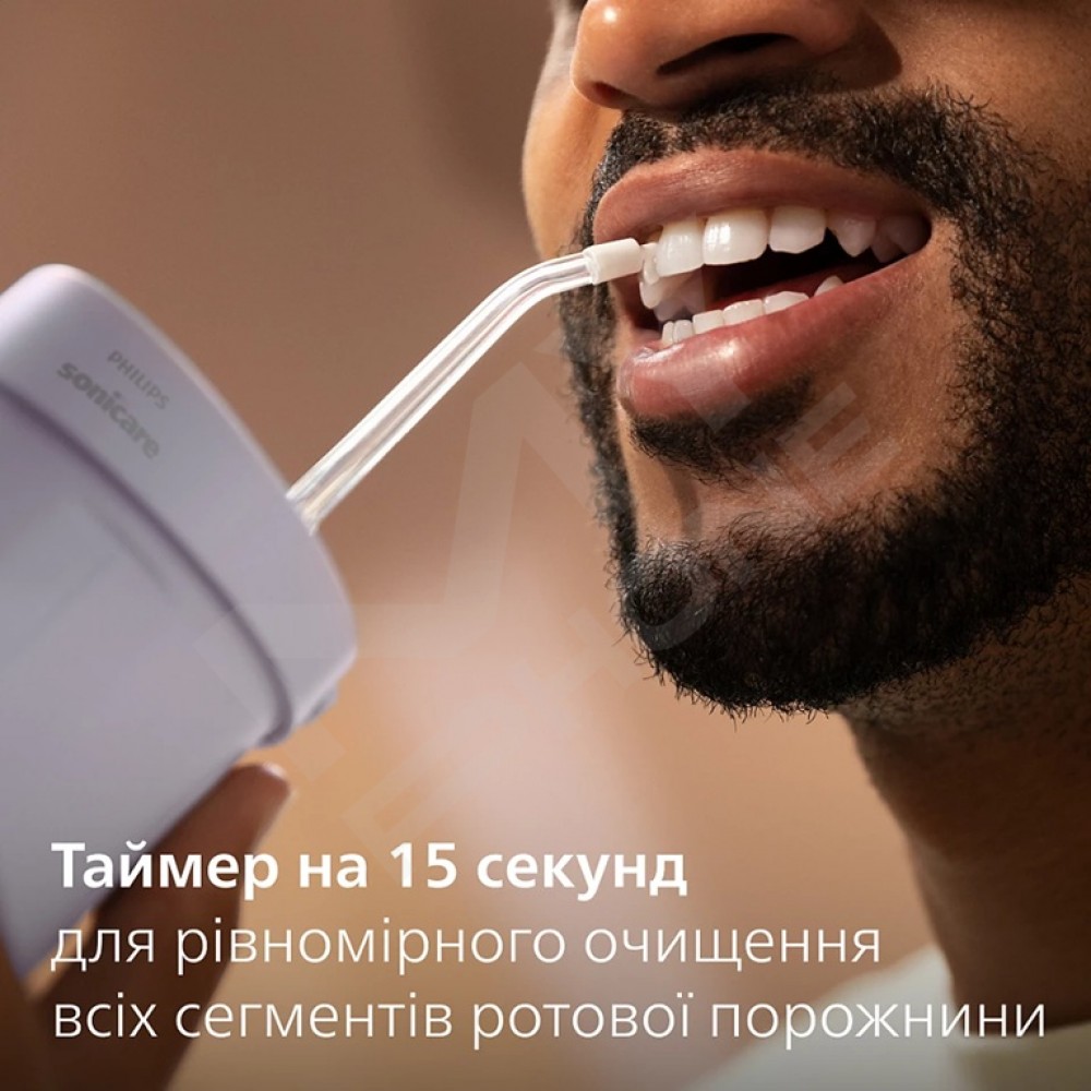 Завдяки таймеру кожні 15 секунд пристрій робить коротку паузу у подачі води, щоб ви знали, коли переходити до наступного квадранта порожнини рота. Це дозволяє рівномірно очищати всю ротову порожнину кожного разу.