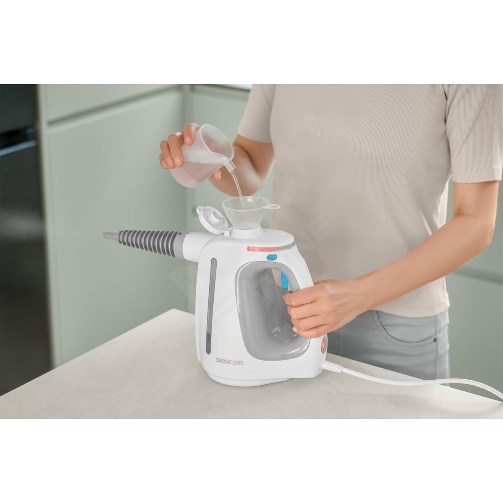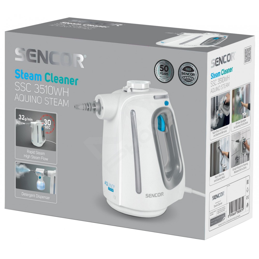 Відкрийте для себе новий рівень парової чистки з ручним пароочищувачем SSC 3510WH AQUINO. Завдяки інноваційній системі генерації пари ваше прибирання стане безпечнішим і швидшим. Воду можна додавати під час прибирання, а система Rapid Steam готує пару всього за 30 секунд. Пара з дуже високою температурою видаляє більшість жиру, засохлих забруднень і бактерій. Унікальний дозатор миючого засобу в поєднанні з гарячою парою видаляє навіть найстійкіші забруднення.