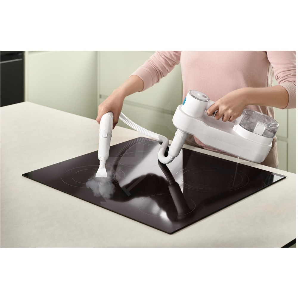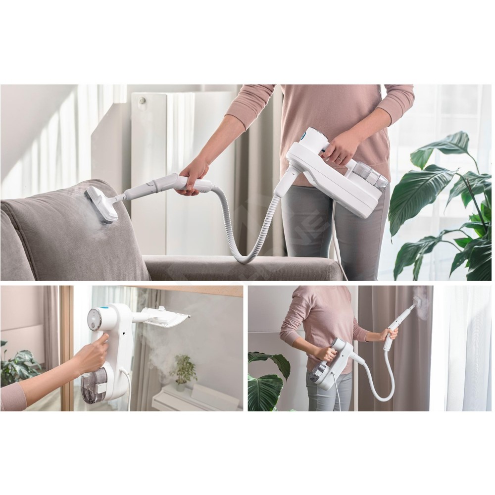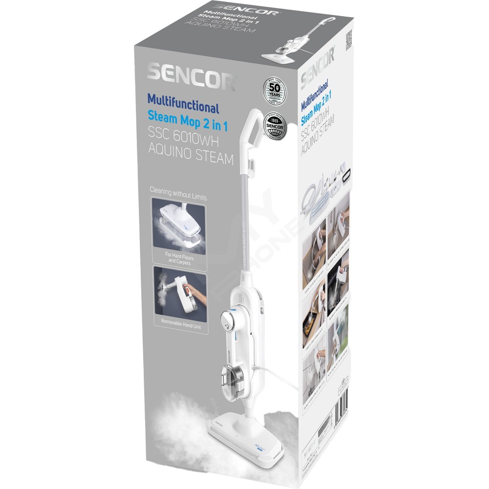 Хочете ідеально чистий дім? Тоді зверніться до багатофункціонального пароочищувача Sencor SSC 6010WH 2-в-1. Цей потужний пароочищувач і ручна швабра в одному приладі потужністю 1 500 Вт ефективно допоможе вам у повному прибиранні та дезінфекції вашого дому. За допомогою ручної швабри ви зможете легко очистити та продезінфікувати не лише тверді підлоги, але і килимки, доріжки та килими з низьким ворсом. За допомогою зручного знімного ручного блоку з безліччю насадок ви зможете продезінфікувати сантехніку. Використовуйте його не лише на раковині, кранах, душі, стиках і унітазі, але і на радіаторах, барбекю, оббивці та скляних поверхнях вікон і дзеркал. Він також підходить для чищення фіранок, портьєр та інших текстильних виробів. Гаряча пара ефективно видаляє бруд, розчиняє жир і дезінфікує різні поверхні та матеріали. Очищення парою високоефективне, а очищена поверхня залишається гігієнічно чистою.