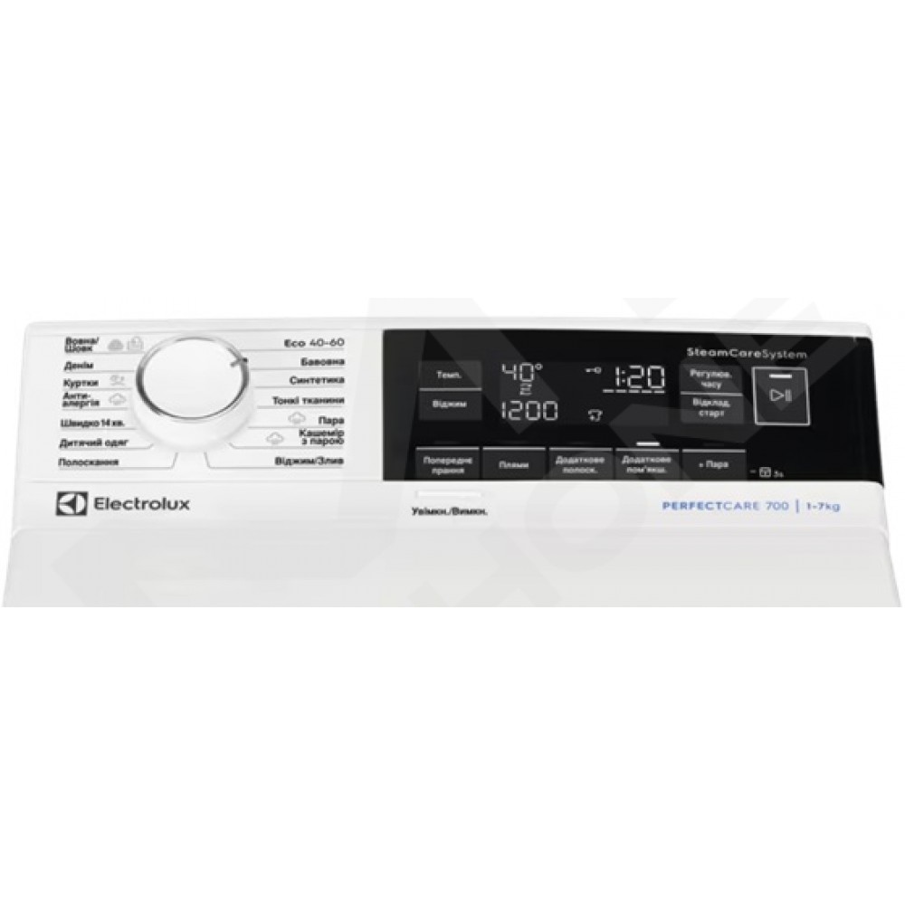 Наша пральна машина 700 з вертикальним завантаженням та системою SteamCare зменшує кількість складок на білизні на третину. Вона додає пару наприкінці програми, допомагаючи досягти гладкості поверхні тканини. І все це без нагрівання як під час прасування.