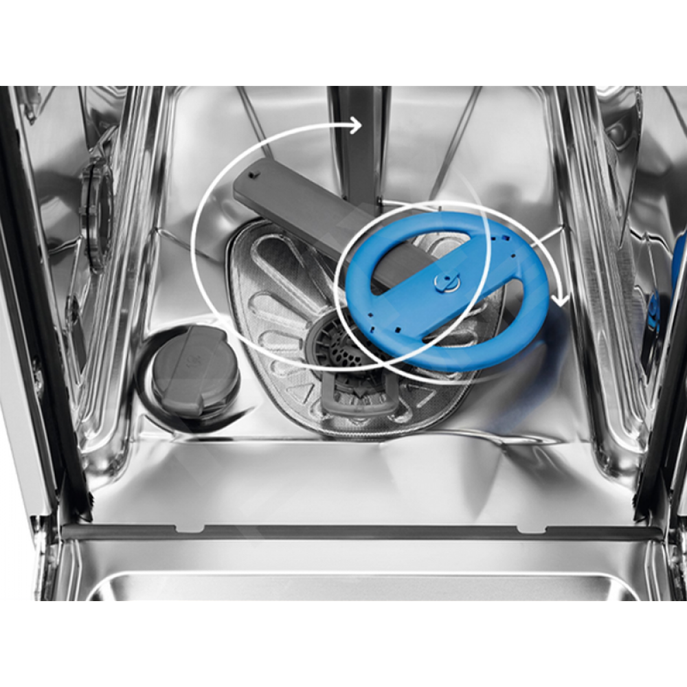 SatelliteClean працює втричі ефективніше ніж звичайна посудомийна машина і гарантує бездоганну чистоту посуду. Розпилювач з подвійним обертанням і постійною зміною кута розпилу ретельно очищає навіть великий посуд.