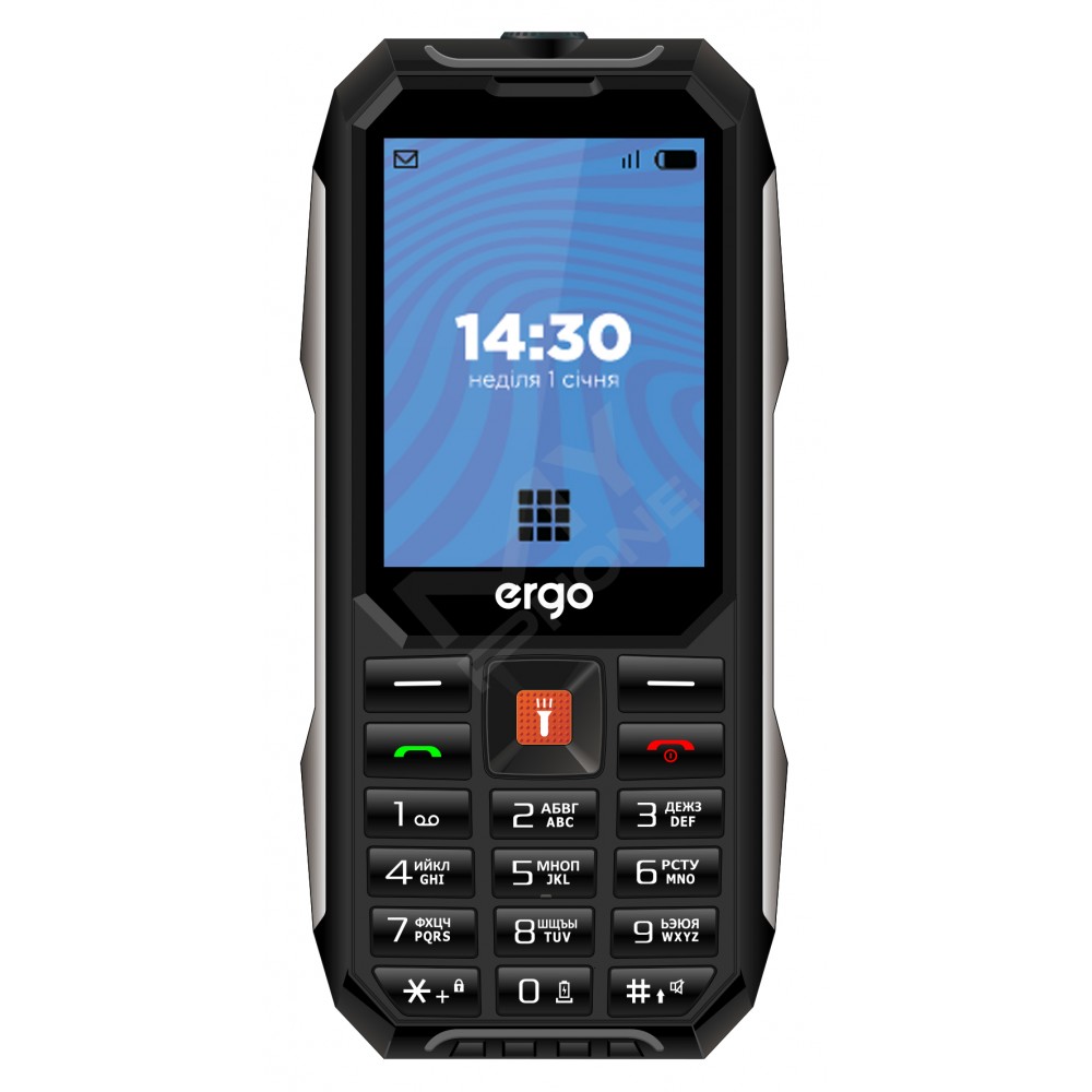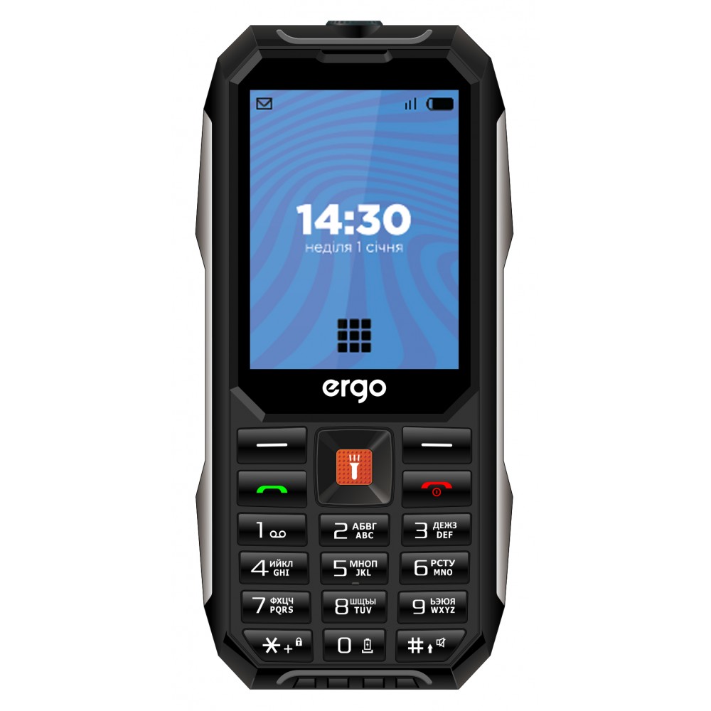 Телефон ERGO E283 Dual Sim Black Orange в чорному корпусі із сіро-помаранчевими вставками привертає увагу дизайном в особливому тактичному стилі.