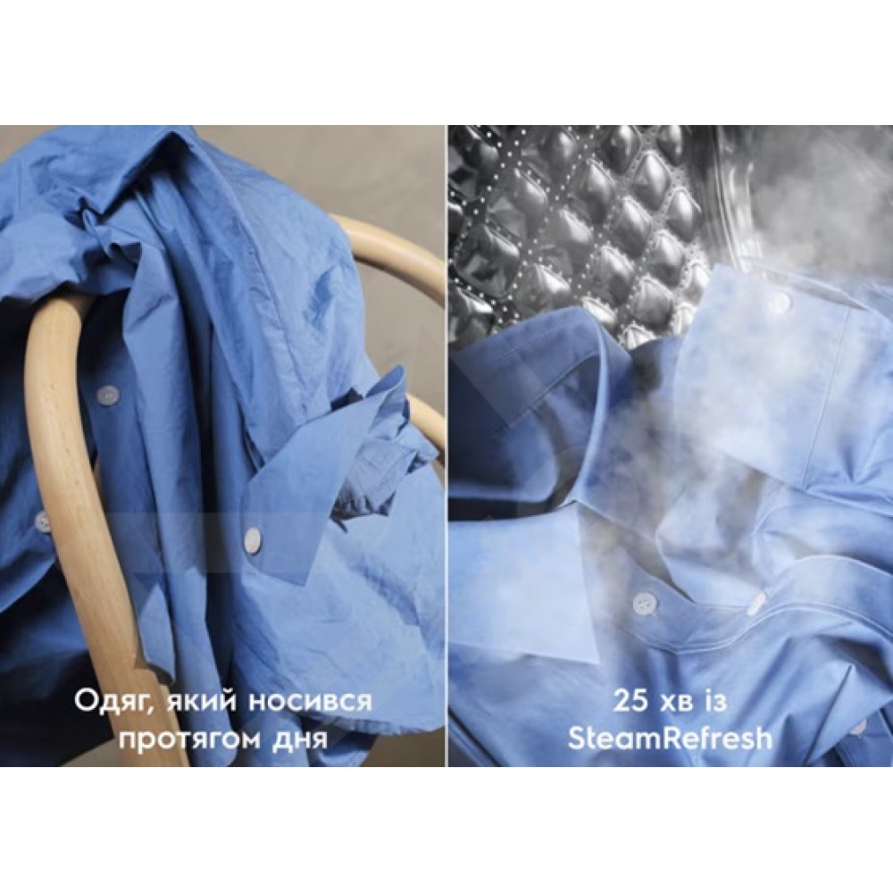Пральна машина SteamCare швидко освіжає навіть делікатний одяг, якому не потрібне повне прання. А пара допомагає усунути складки та неприємні запахи.