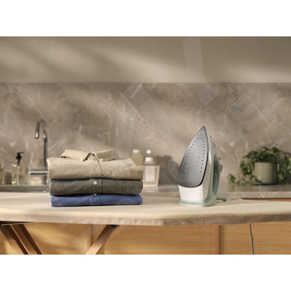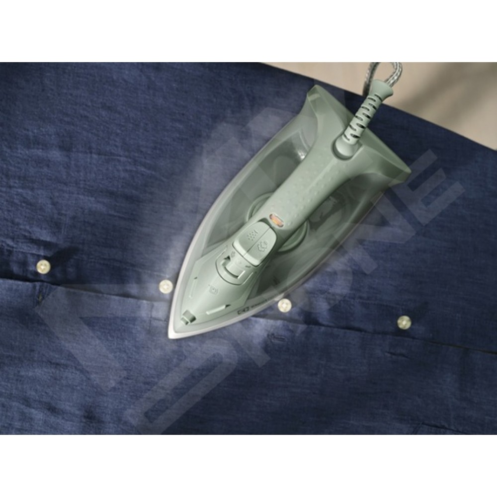 Антипригарна підошва забезпечує плавне ковзання по тканині, запобігаючи пошкодженню речей і полегшуючи прасування навіть великих обсягів білизни. Завдяки інтенсивності подачі пари до 20 г/хв, праска ефективно розгладжує навіть найстійкіші складки. Ви можете обрати один з двох рівнів подачі пари або використовувати сухий режим, щоб досягти оптимального результату для кожної тканини.