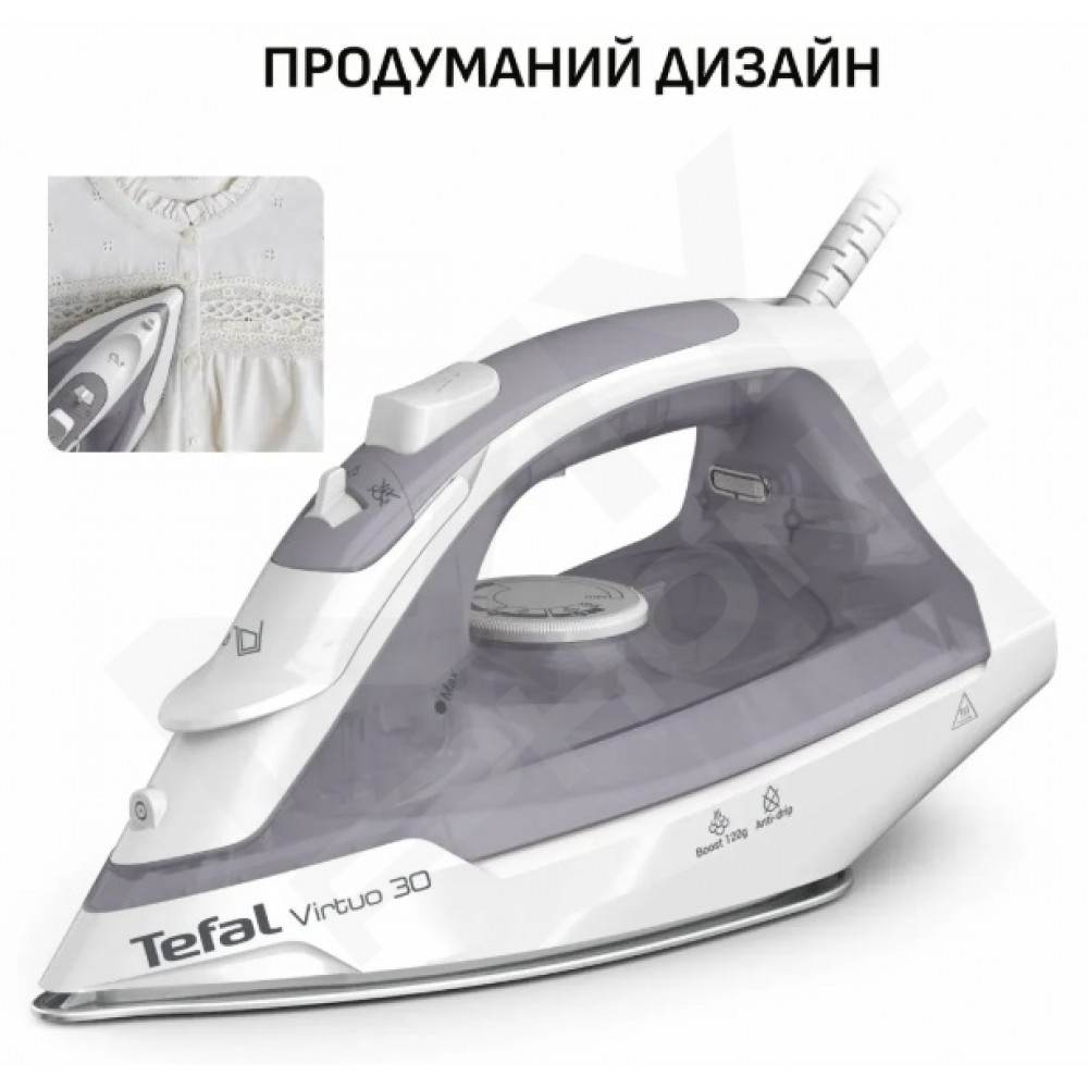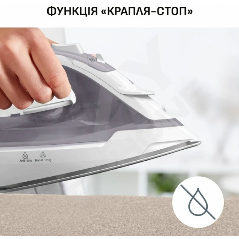 Тип: Праска з подачею пари Потужність: 2000 Вт Подача пари: 27 г/хв Паровий удар: 120 г/хв