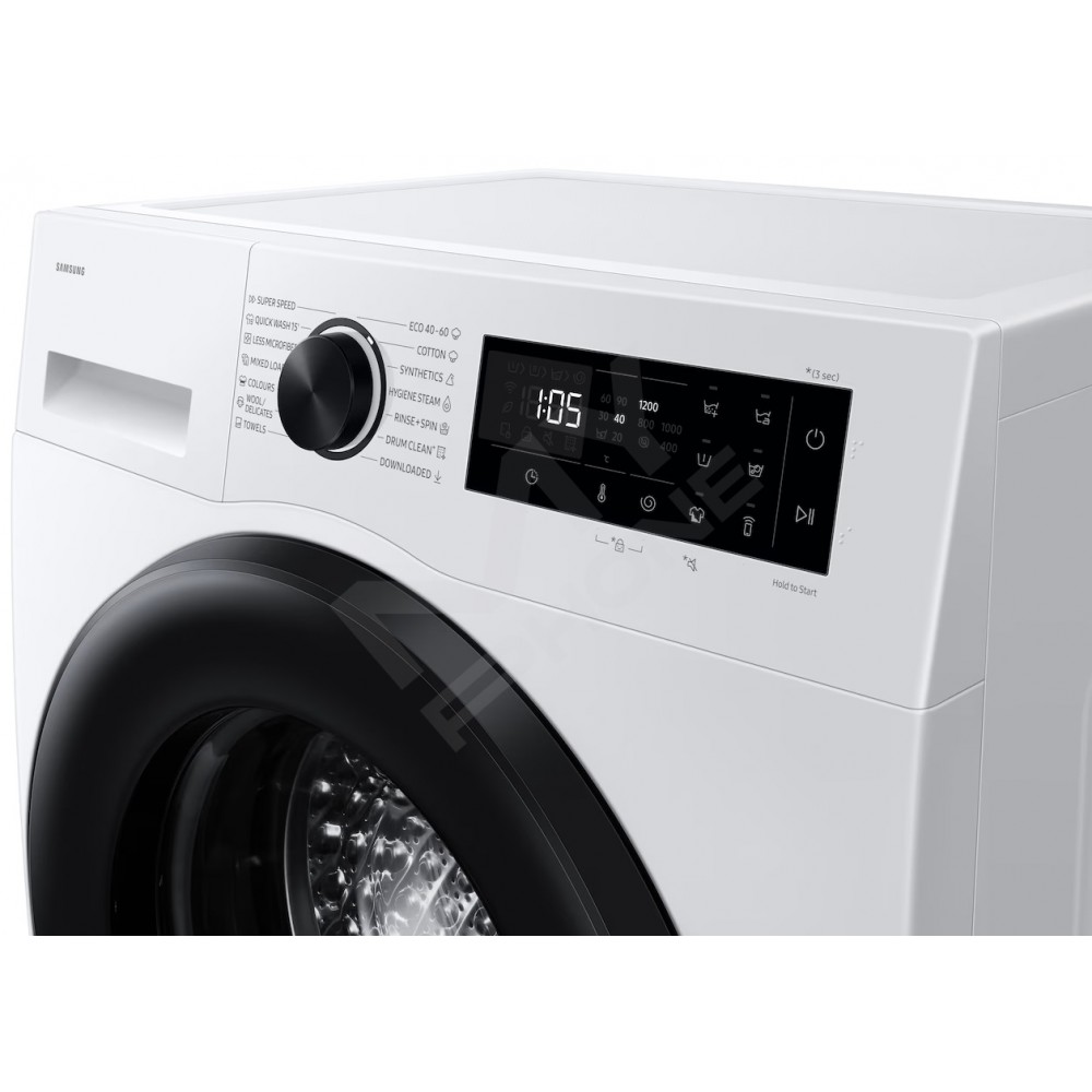 * Доступно на пристроях Android та iOS. Потрібні підключення до Wi-Fi та обліковий запис Samsung. Зберігає дані користувача, налаштування та шаблони використання, що дозволяє пропонувати найкорисніші варіанти роботи. ** Користувач несе повну відповідальність за будь-які підсумкові наслідки функціонування машини, включаючи, але не обмежуючись, будь-яким пошкодженням або збитком, спричиненим наданням неправильної інформації. *** Рекомендований цикл прання передбачає лише певний час і може не відповідати типу тканини або рівню забруднення речей, що перуться. **** Необхідне постійне підключення до Wi-Fi, що може збільшити споживання енергії.