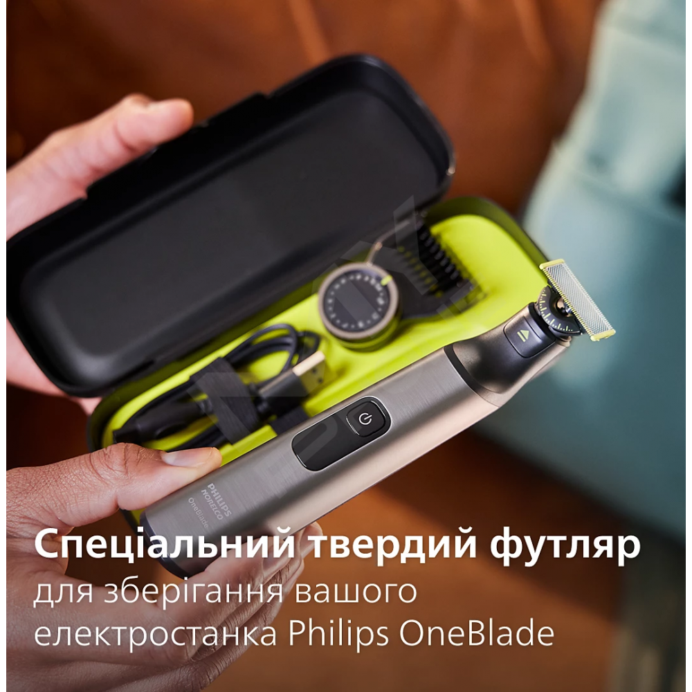 Твердий футляр OneBlade ідеально підходить для використання в дорозі.