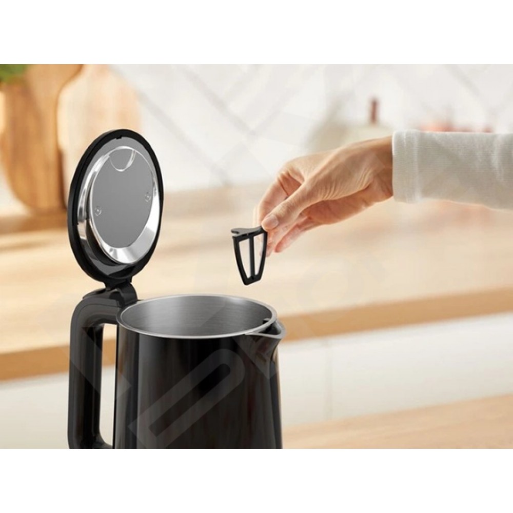 Фільтр проти накипу легко знімається та миється, забезпечуючи чистішу воду та кращий смак чаю й кави.