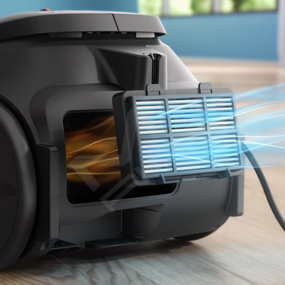 Система фільтрації HEPA вловлює >99,99%* дрібних частинок пилу, забезпечуючи чистіше повітря у вашому домі.