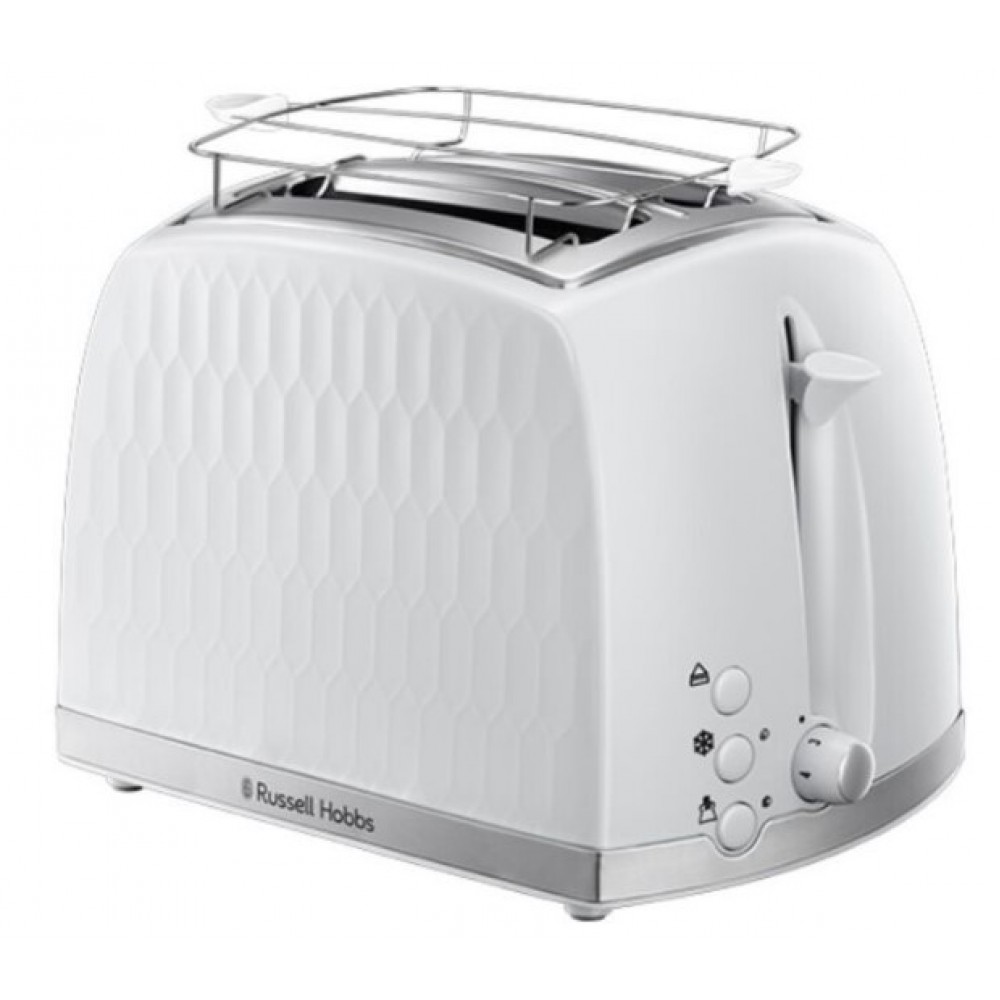 Тостер Russell Hobbs 26060-56 Honeycomb - монохромна, лаконічна, функціональна модель з обтічним дизайном, яка стане справжнім помічником у приготуванні хрустких смачних тостів. Завдяки функції регулювання ступеня обсмажування можна приготувати трохи підрум'янений або підсмажений хліб. Широкі слоти з підтримкою швидкого обсмажування значно економлять час. Ви зможете перевірити готовність, не зупиняючи процес. Також можна підігріти або розморозити хліб. У комплекті є все необхідне.
