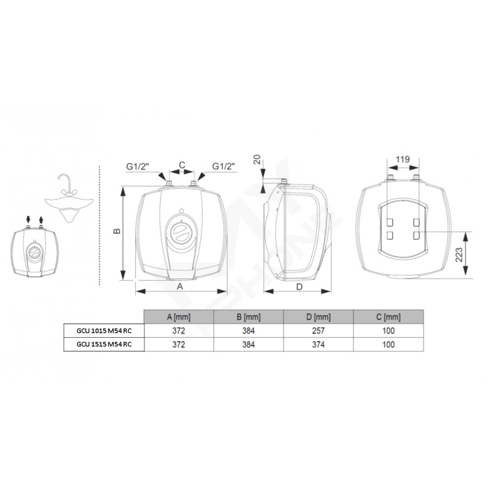 Малолітражні та компактні водонагрівачі серії SimpatEco М54 представлені об’ємами 10 і 15 літрів моделями для встановлення як під раковиною, так і над раковиною.