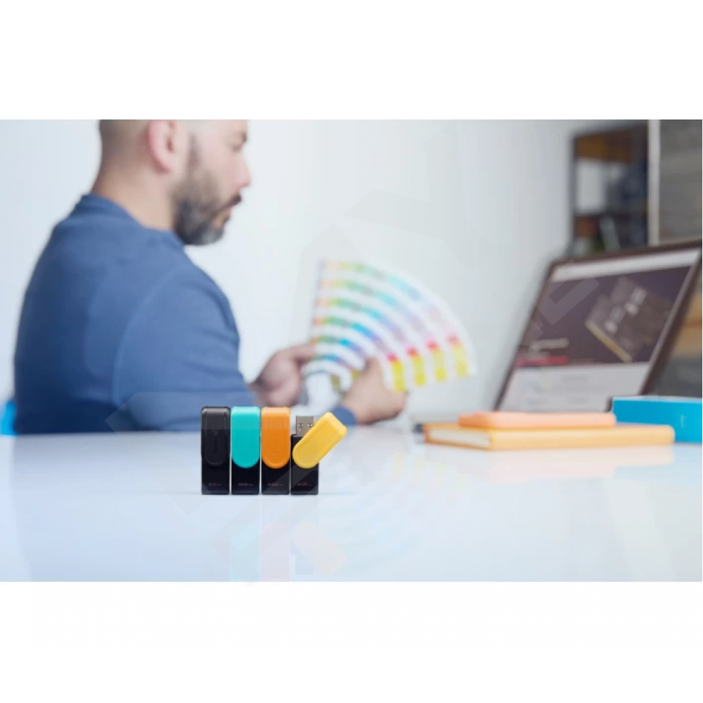 Накопичувач Kingston DataTraveler Exodia S представлений в різних варіантах з ємністю до 256 Гб, а завдяки невеликим габаритам його легко носити в сумці або навіть просто в кишені, щоб отримати доступ до потрібного файлу в будь-який момент. Накопичувач настільки маленький та легкий, що він просто не відчувається у твоєму рюкзаку.