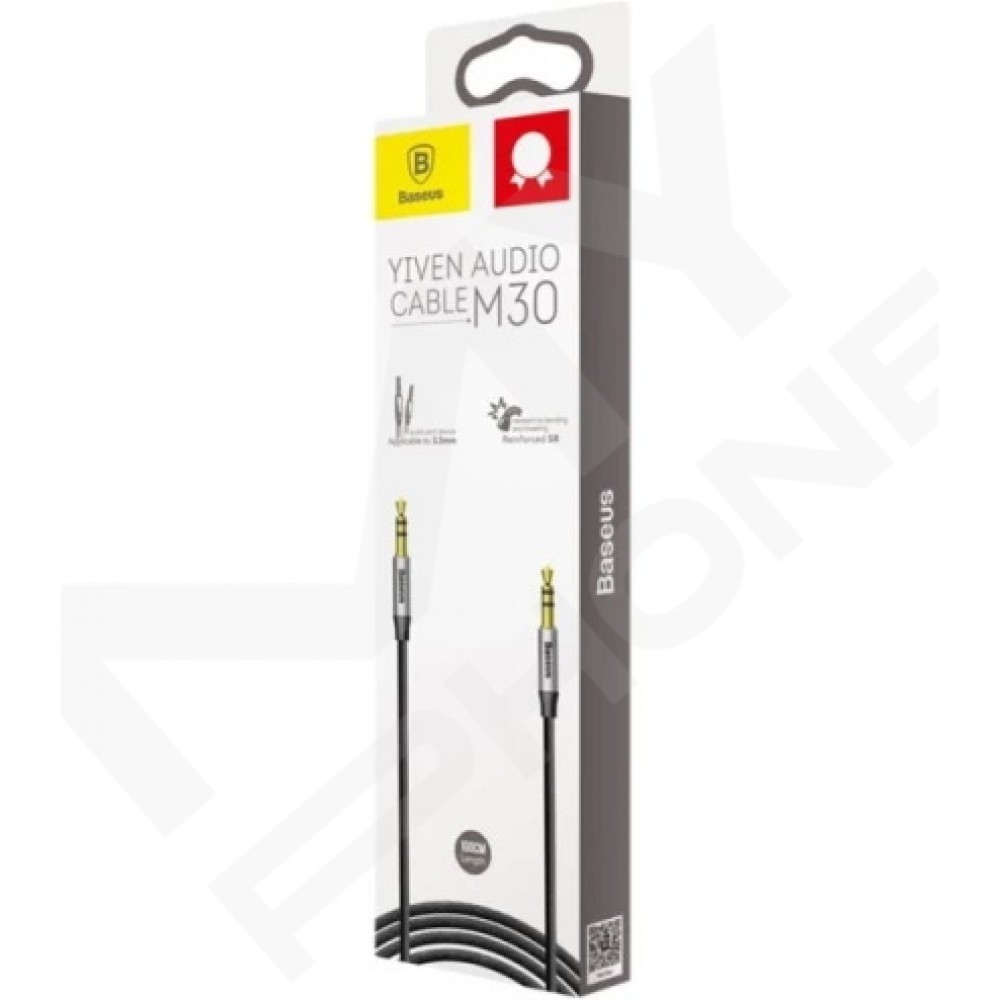 Теги: кабель Baseus AUX, Baseus AUX M30, AUX 3.5 мм 1 м, кабель для авто та колонок, нейлонова оплітка, сіро-чорний кабель