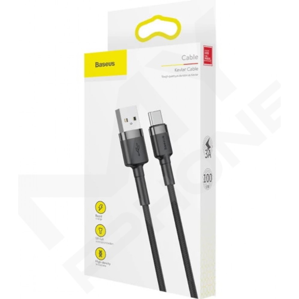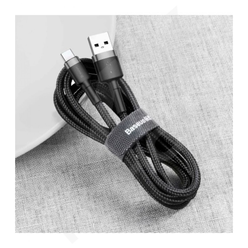 Теги: кабель Baseus Cafule, Baseus Type-C, кабель USB Type-C 1м, кабель для швидкої зарядки, нейлонова оплітка, чорно-сірий кабель