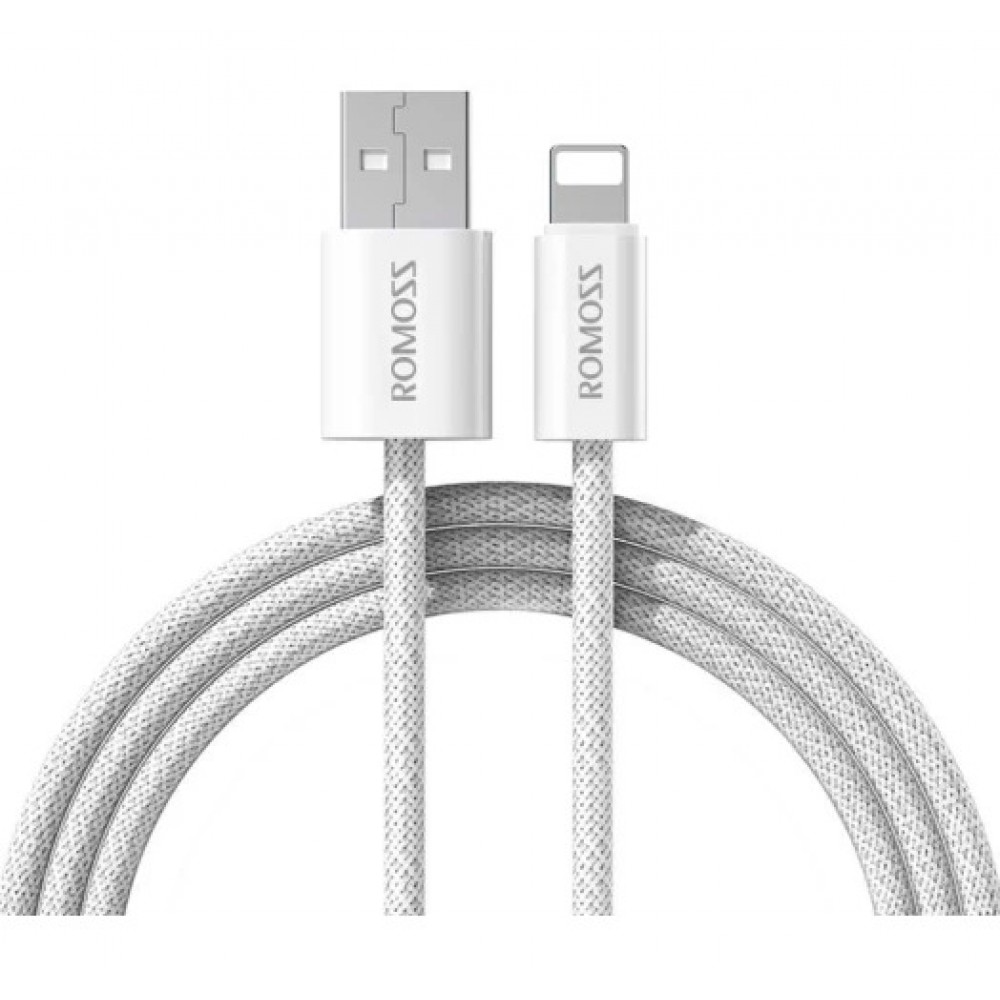Кабель Romoss CB1234G USB-Lightning 2.4A 1m (CB1234G-621-127H) — високоякісний зарядний кабель білий, призначений для пристроїв Apple з роз’ємом Lightning.