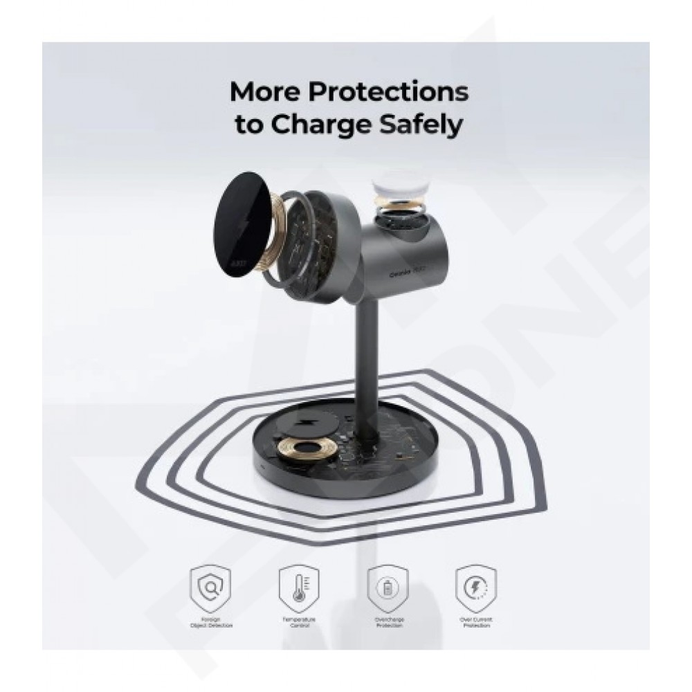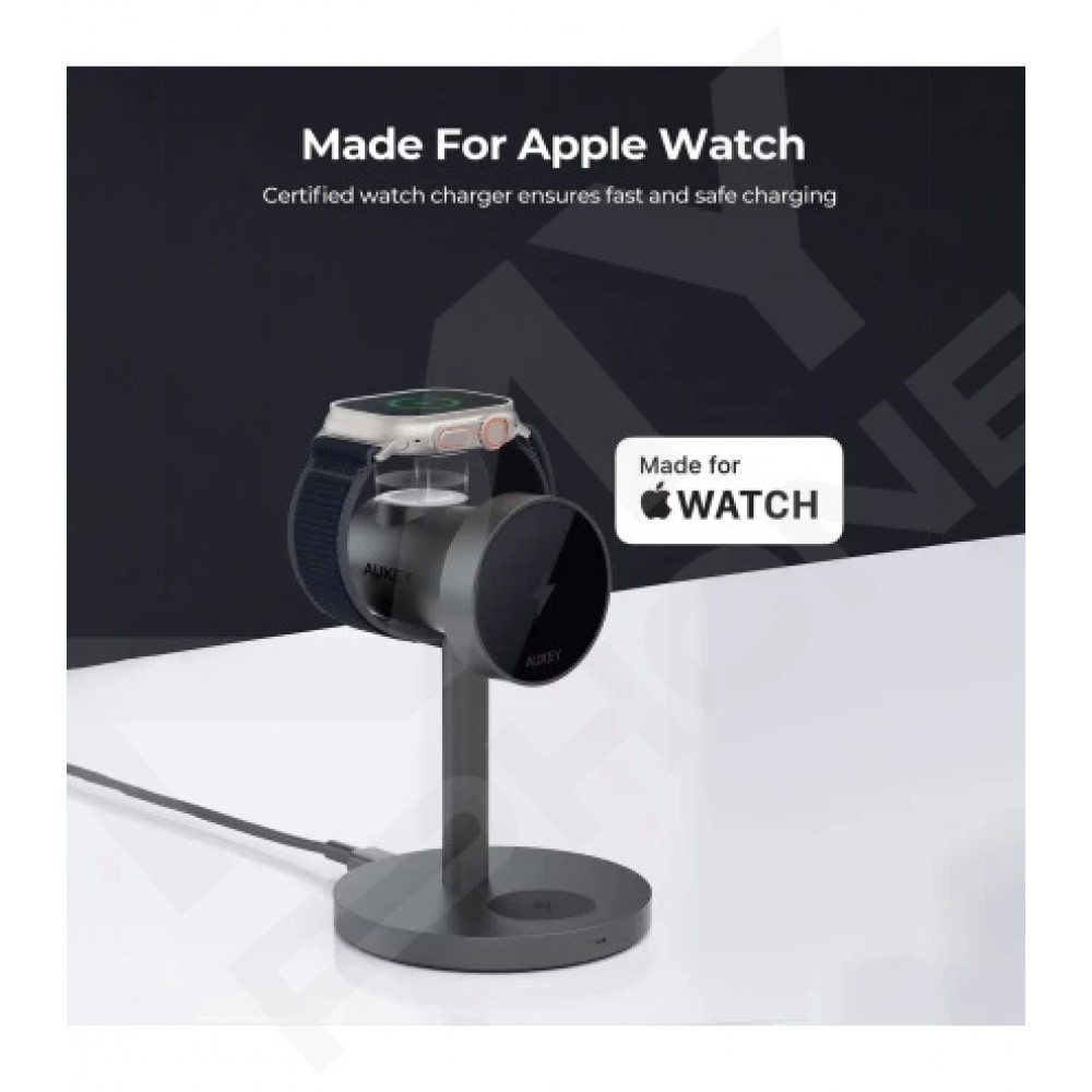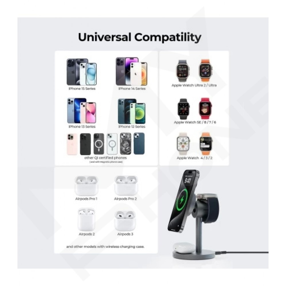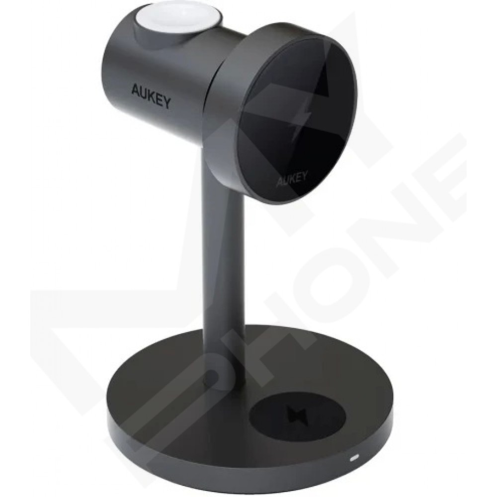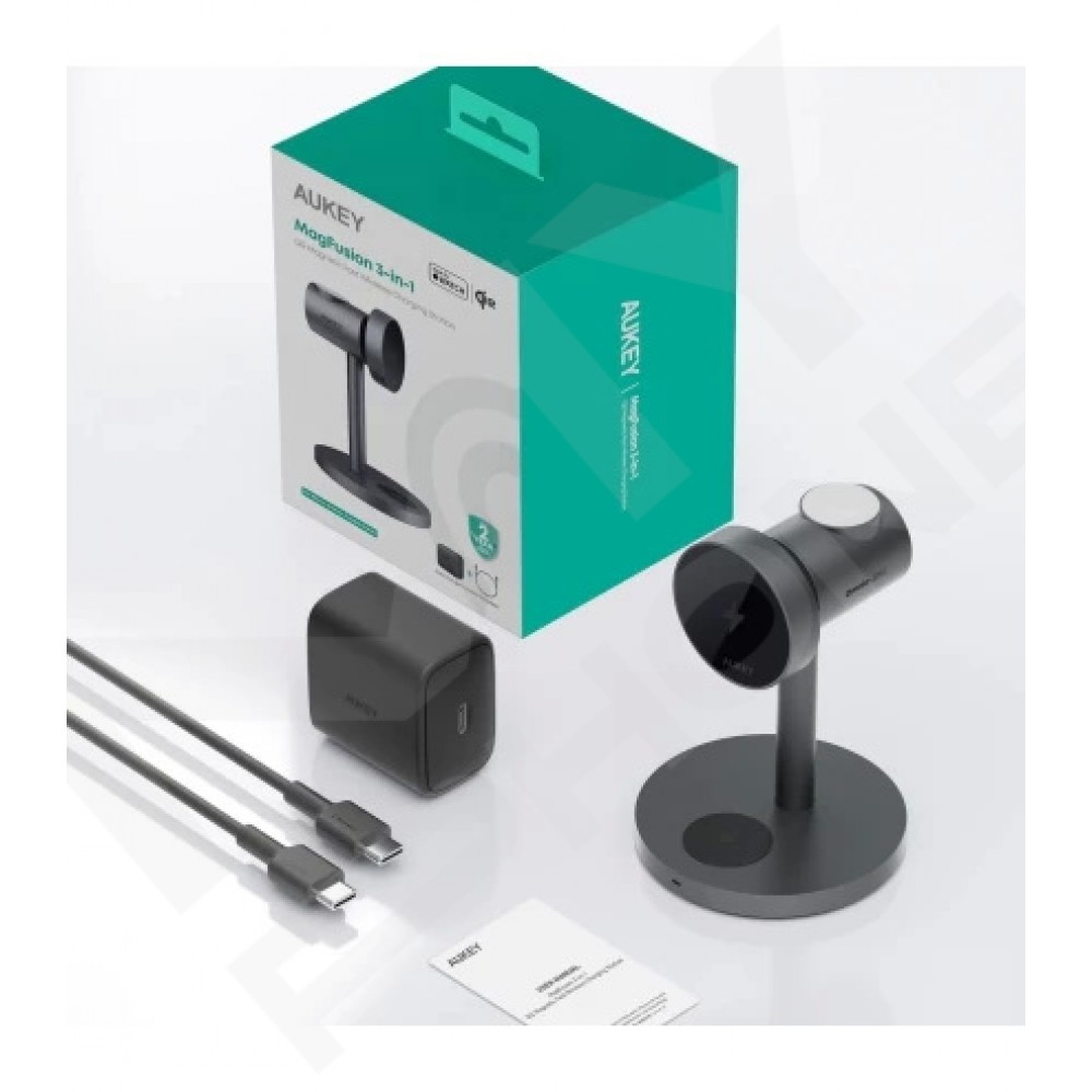 AUKEY MagFusion 3-in-1 15W (LC-MC311) — сучасна бездротова зарядна станція 3-в-1 з підтримкою MagSafe, створена для одночасної зарядки iPhone, Apple Watch та бездротових навушників. Магнітна фіксація забезпечує точне позиціонування смартфона та стабільне заряджання.