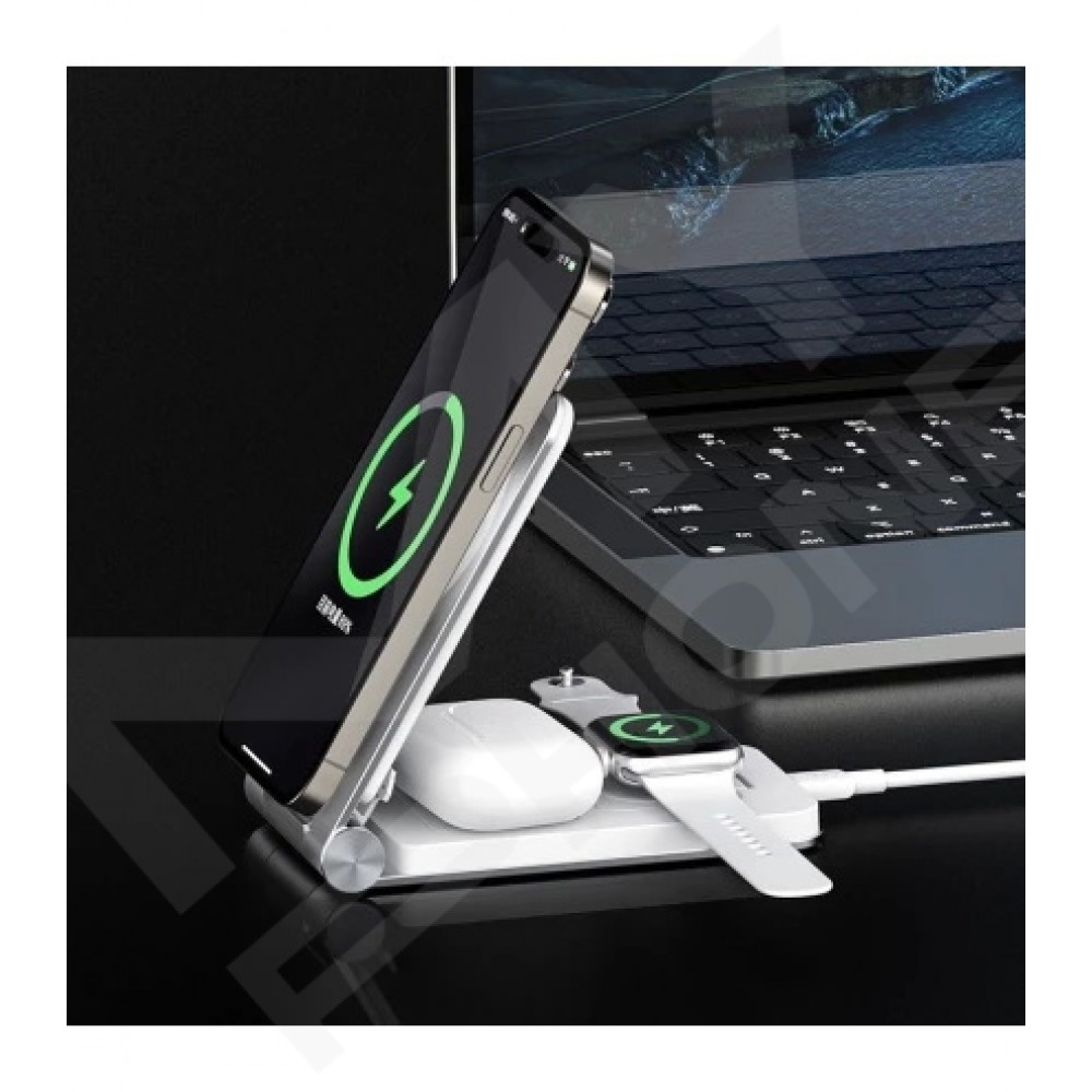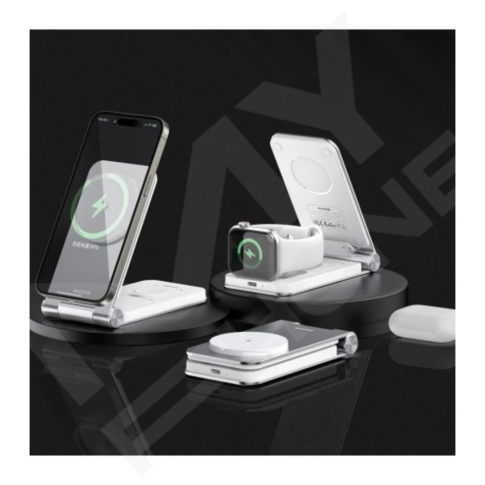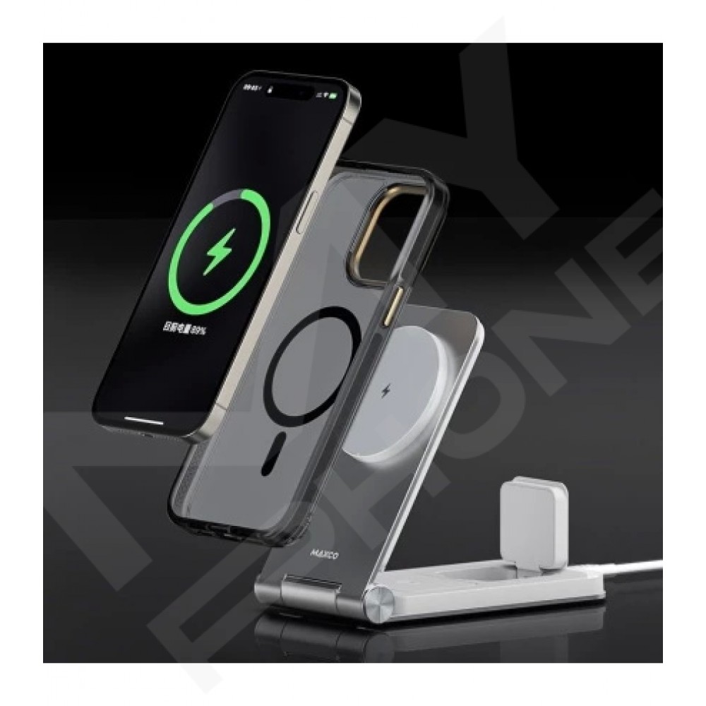 Теги: MAXCO MW08, бездротова зарядка 3in1, Qi зарядка, 15W wireless charger, зарядна станція 3 в 1, сіра