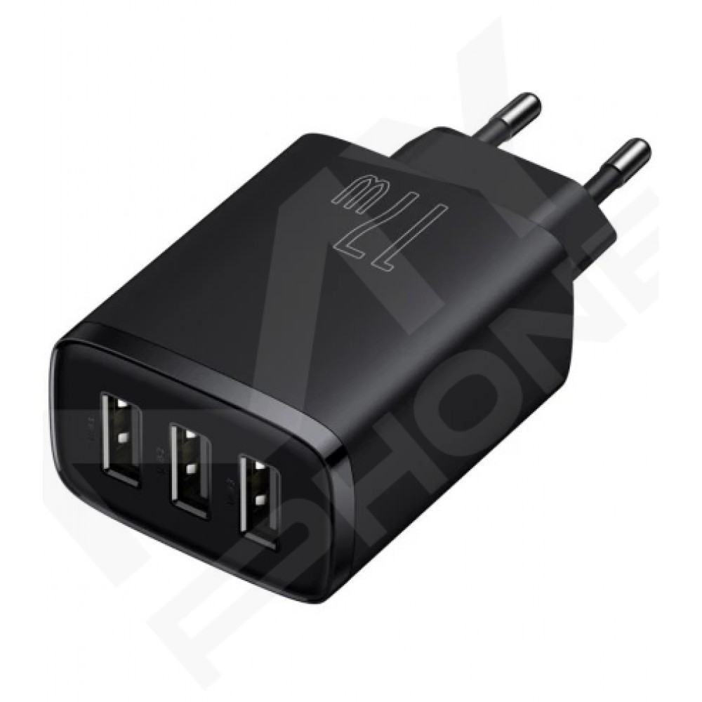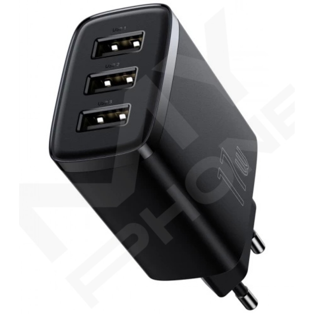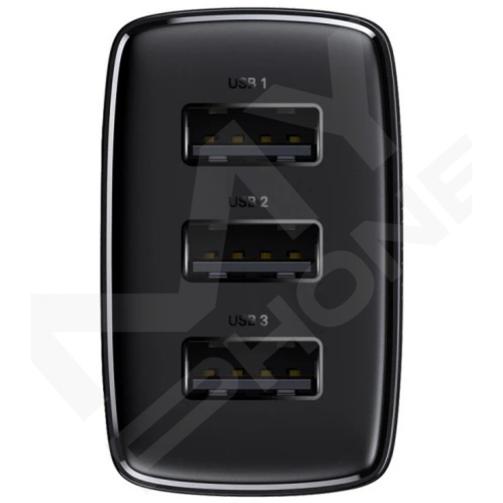 Теги: Baseus CCXJ020101, зарядний пристрій Baseus, 3 USB, 17W, USB-A, зарядка смартфона, чорний адаптер, блок живлення