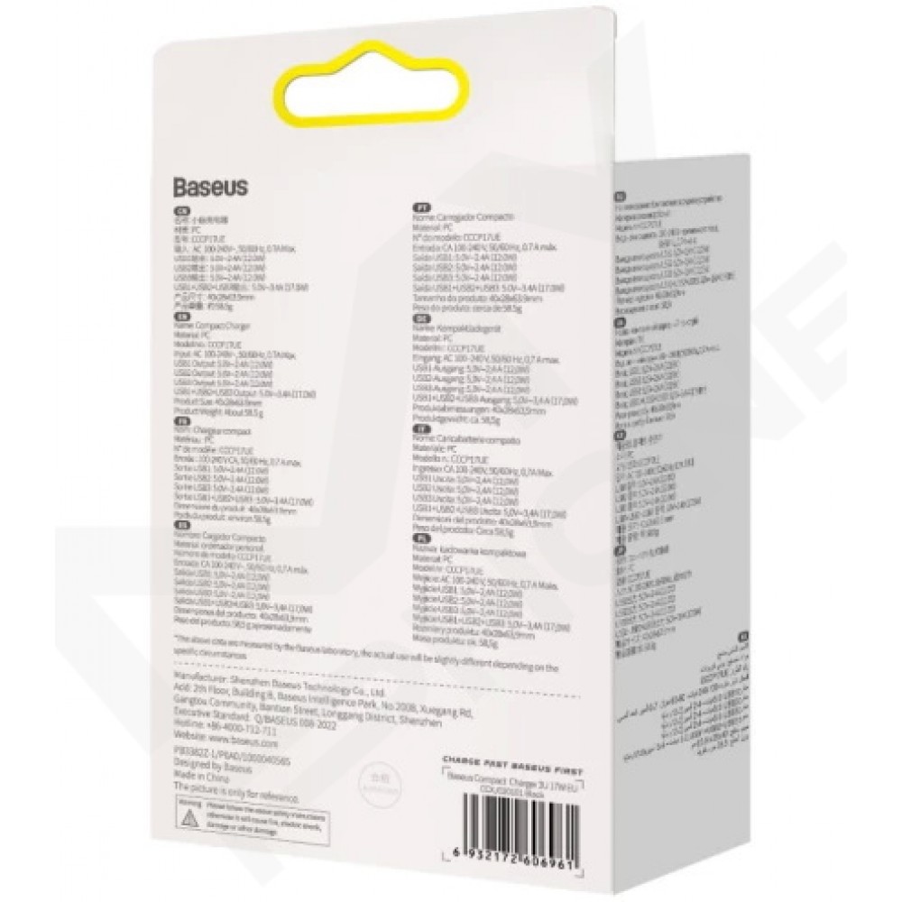 Зарядний пристрій Baseus Compact 3U 17W(CCXJ020101)чорний