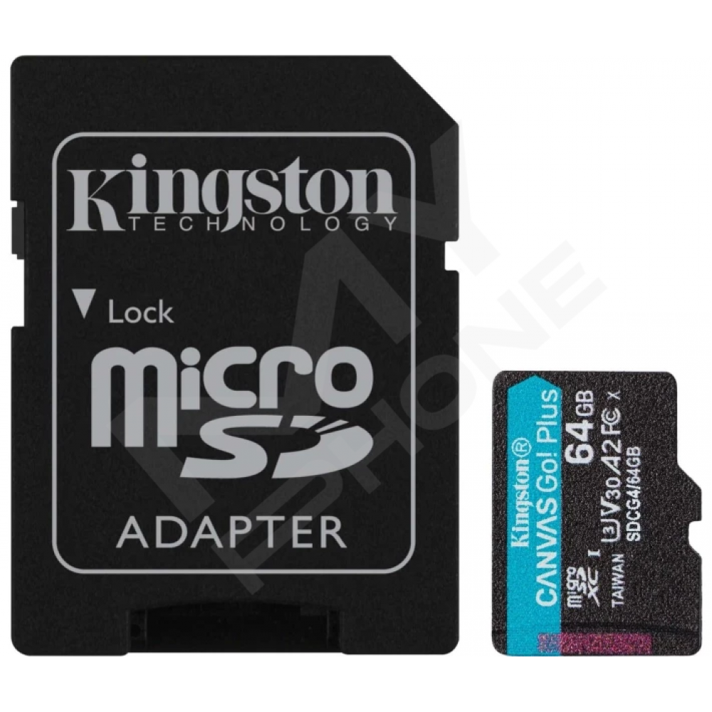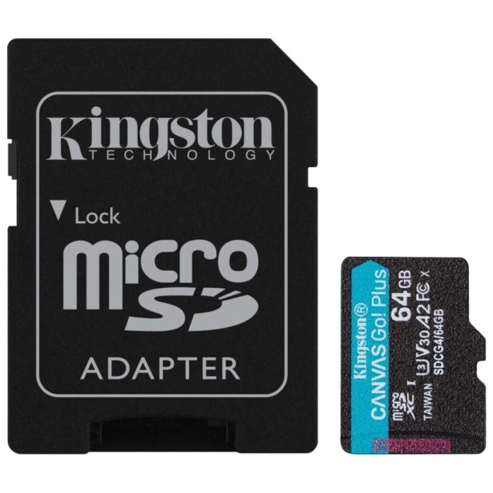 Теги: карта пам'яті, Kingston, microSDXC, 64GB, Canvas Go Plus, Gen4, адаптер, висока швидкість, для смартфона, для камери, флешка, карта пам'яті Kingston, SD карта, пам'ять для пристрою, 64 ГБ, адаптер microSD