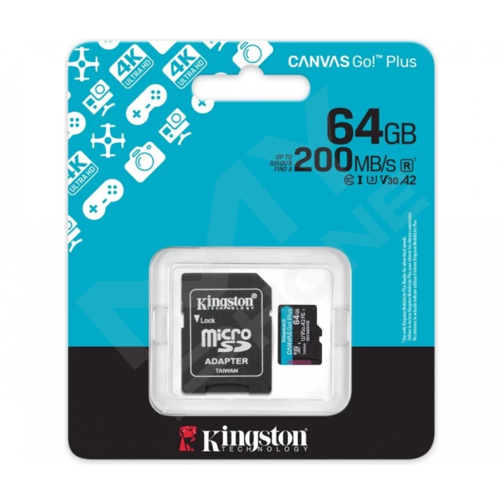 Карта пам'яті Kingston microSDXC64GB Canvas Go Plus Gen4 призначена для любителів пригод і геймерів, які потребують високої продуктивності девайсів і якісного контенту, хоч би де вони перебували. Завдяки блискавичній швидкості трансферу інформації до 200 МБ/с, накопичувач оптимізує робочі процеси, даючи змогу присвятити більше часу зйомці та креативності підходу. Зйомка і перенесення контенту у форматах Full HD і 4K UHD більше не проблема.