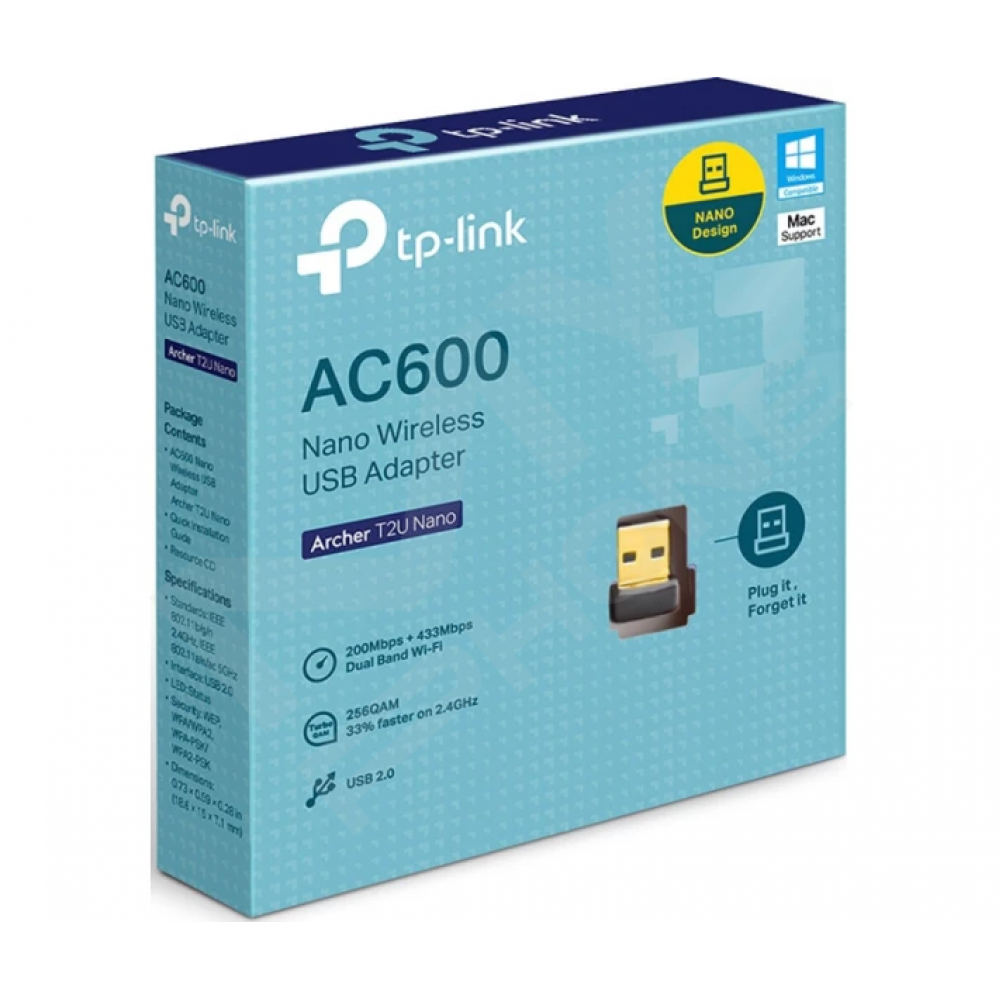Archer T2U Nano приймає сигнал Wi-Fi в двох діапазонах. Технологія 256QAM дозволяє збільшити швидкість передачі даних на 33% в діапазоні 2,4 ГГц - з 150 Мбіт / с до 200 Мбіт / с. Швидкість до 433 Мбіт / с на 5 ГГц відмінно підходить для перегляду потокового відео і онлайн-ігор без затримок, а швидкість до 200 Мбіт / с на 2,4 ГГц - для перегляду веб-сторінок.