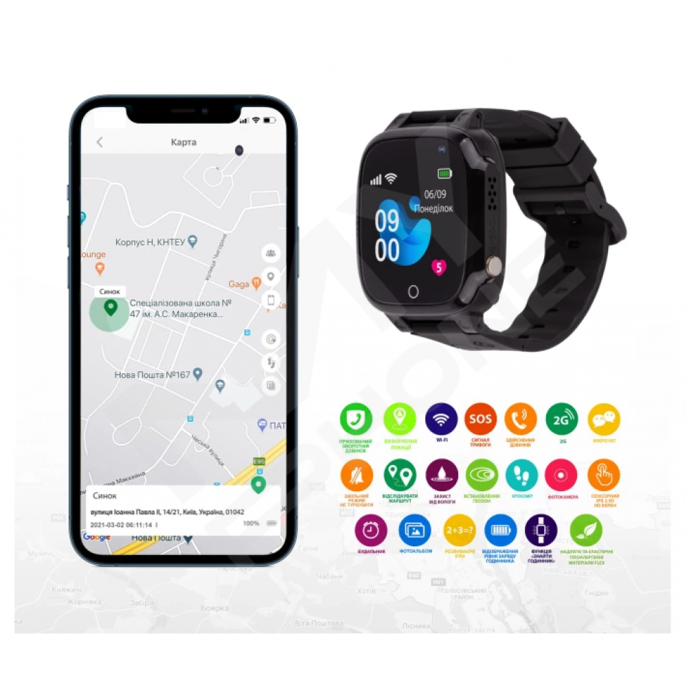 Смарт-годинник для дітей AmiGo GO008 MILKY GPS WIFI Black