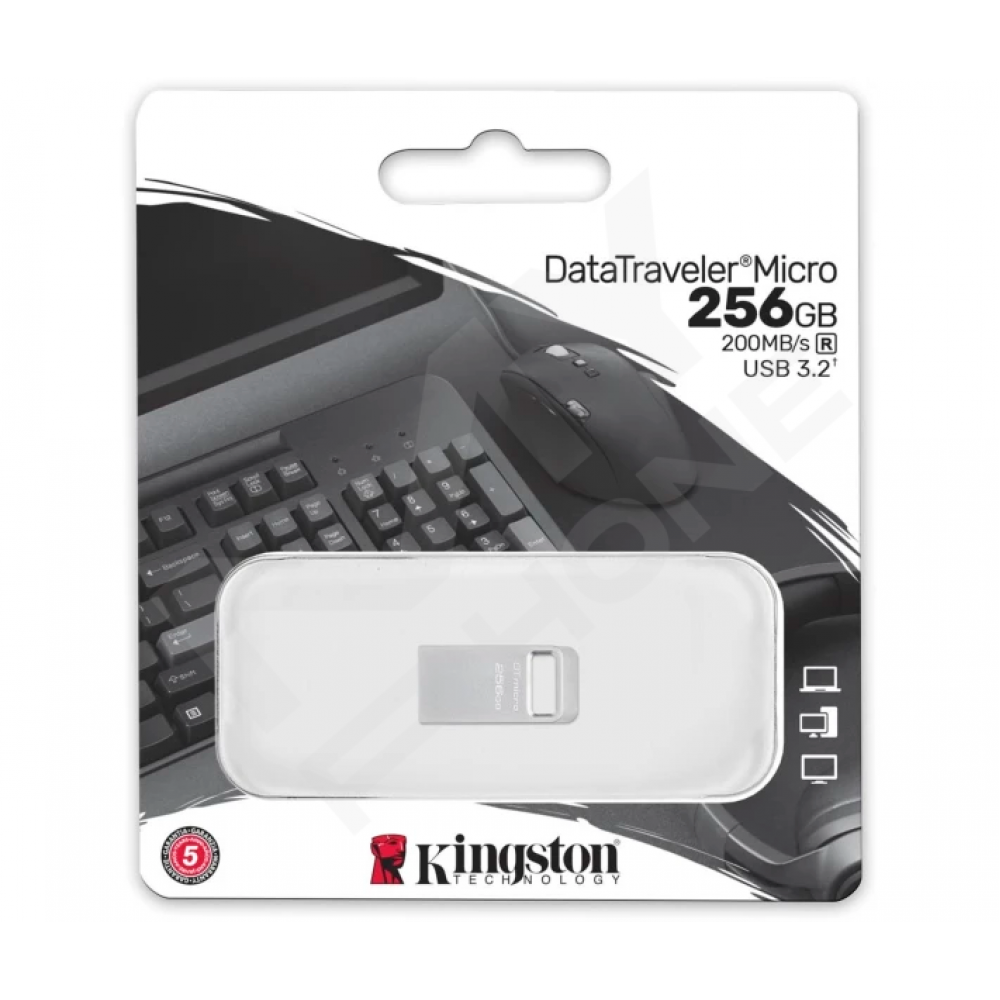 З флеш накопичувачем Kingston DT Micro ви зможете зберігати улюблені фотографії, важливі документи, музику та відеофайли та мати можливість у будь-який час швидко поділитися інформацією. Адже цей портативний пристрій відмінно справляється із зберіганням та перенесенням даних об'ємом до 256 Гб. Накопичувач сумісний із ноутбуками та ПК, а також іншими цифровими пристроями, що підтримують стандарт USB 3.2.
