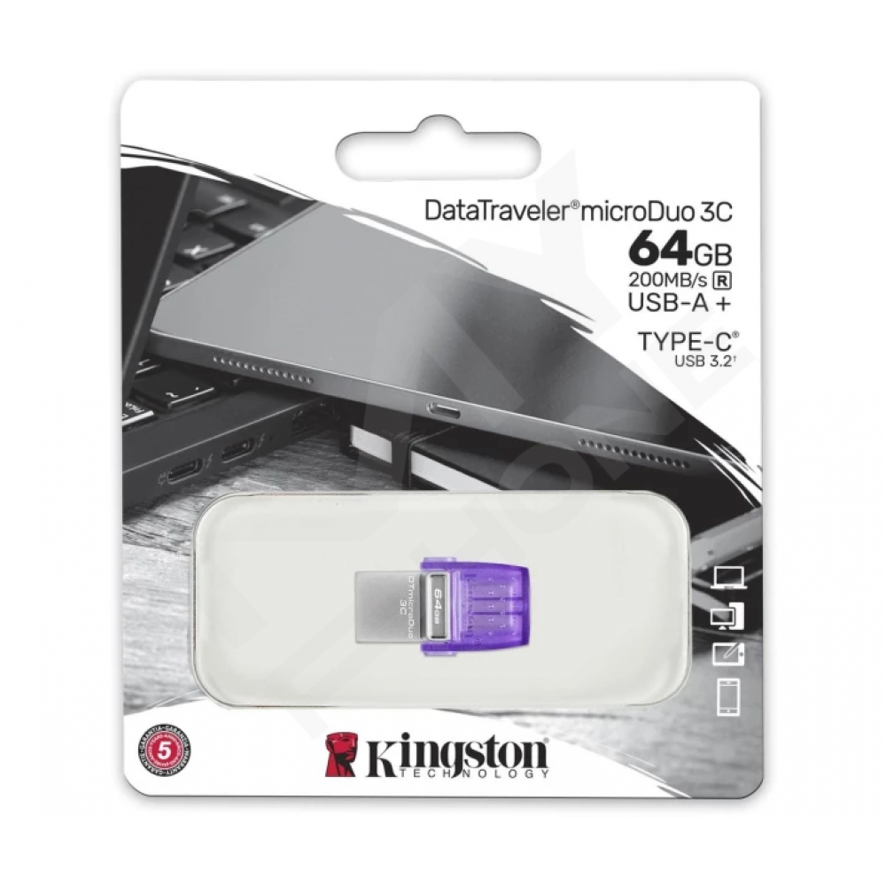 Флеш накопичувач Kingston DT microDuo3C з інтерфейсами USB Type-C та Type-A пропонує зручне рішення щодо перенесення та зберігання даних. Накопичувач підходить для використання практично з будь-якими сучасними пристроями, включаючи смартфони, планшети, ноутбуки та ПК. За допомогою Kingston ви зможете звільнити місце на внутрішньому диску пристрою, перенісши файли на портативний носій. Мініатюрний форм-фактор та продуманий дизайн із захистом порту забезпечують комфортне використання в будь-яких умовах і навіть на ходу.