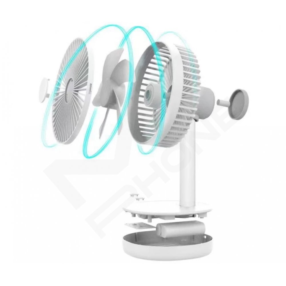 Невеликий, але досить потужний настільний вентилятор Firen Desktop small fan TD1610 допоможе тобі не страждати від спеки влітку. Надійний безщітковий двигун потужністю 5 Вт створює освіжаючий потік повітря, який можна направити в потрібну сторону. Тиха робота не відволікає від поточних справ і не заважає розмовляти телефоном, тому вентилятор буде ідеальним варіантом не тільки для дому, а й для офісного використання. Місткий акумулятор забезпечує до 10 годин роботи без перерви на підзарядку. Одного натискання на кнопку достатньо, щоб створити приємну атмосферу в будь-який час і в будь-якому місці.