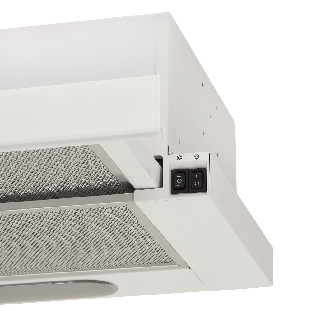 Витяжка обладнана лампою розжарювання потужністю 25 Вт. Механічне клавішне управління витяжкою є простим, зручним і надійним. На корпусі розташовані дві клавіші - перемикач швидкостей (2 швидкості) та клавіша ввімкнення/вимкнення світла.