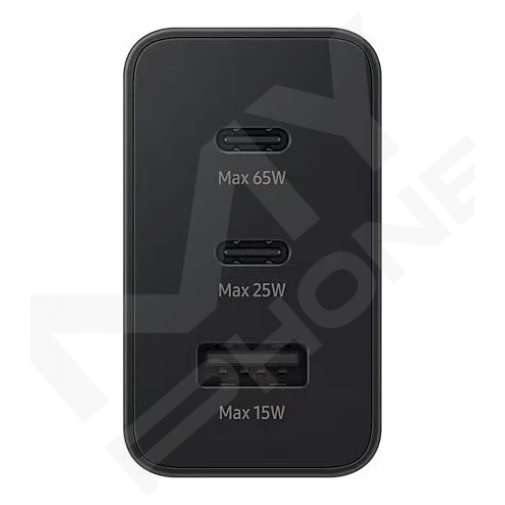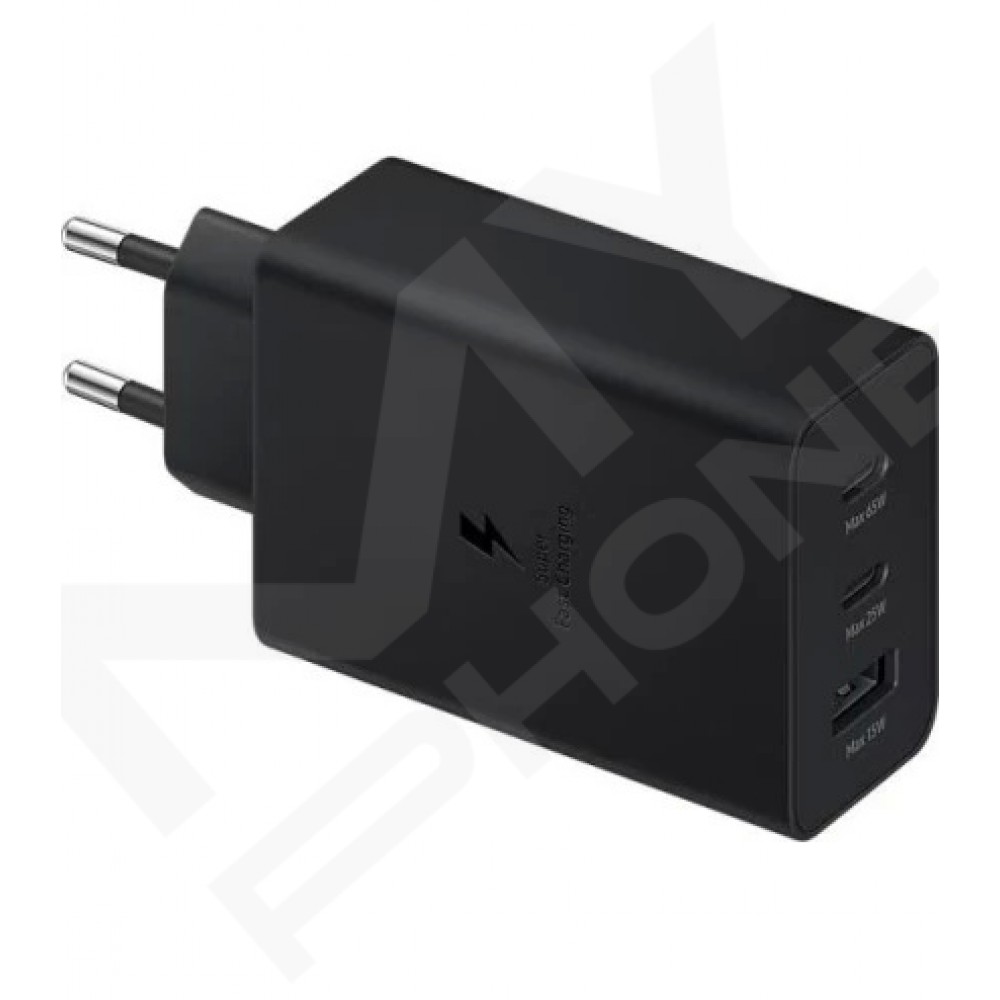Теги: Samsung EP-T6530NBEGEU, зарядний пристрій Samsung 65W, Trio, 2 USB-C, 1 USB-A, PD 3.0, PPS, Super Fast Charging, чорний адаптер, блок живлення